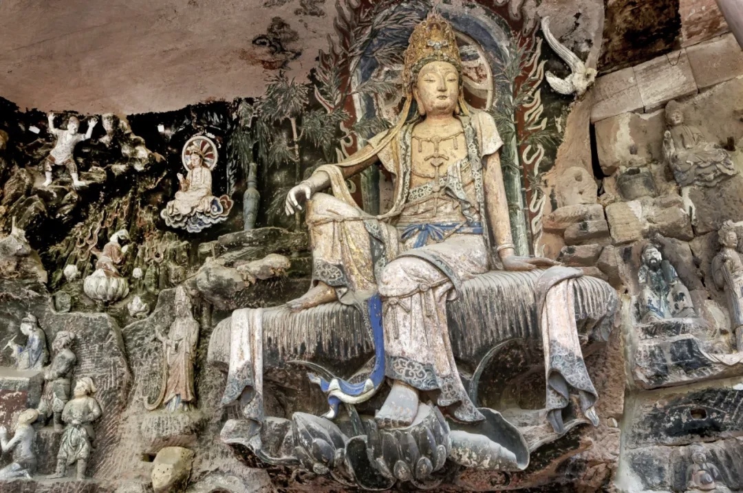 走进安岳,就像打开一本立体的唐宋石刻史书。这里的石窟不只有庄严法相,更藏着一份跨越千年的“福气”。“三洞一院”(圆觉洞、毗卢洞、华严洞、卧佛院)是安岳石刻中最具代表性的核心遗存。在圆觉洞,可见观音含笑俯瞰众生;在毗卢洞,有中国最精美的观音经变像——紫竹观音,被誉为“东方维纳斯”;在华严洞,造像群布局合理、形态逼真、气韵生动。在卧佛院,全长23米的释迦牟尼涅槃像静卧山间,慈目微闭,仿佛也沉浸在祥和的年味里。