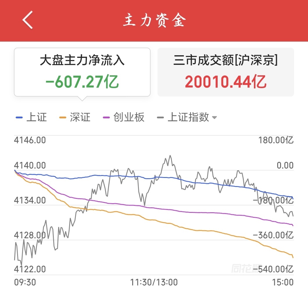 主力资金今日呈净流出态势。图据同花顺