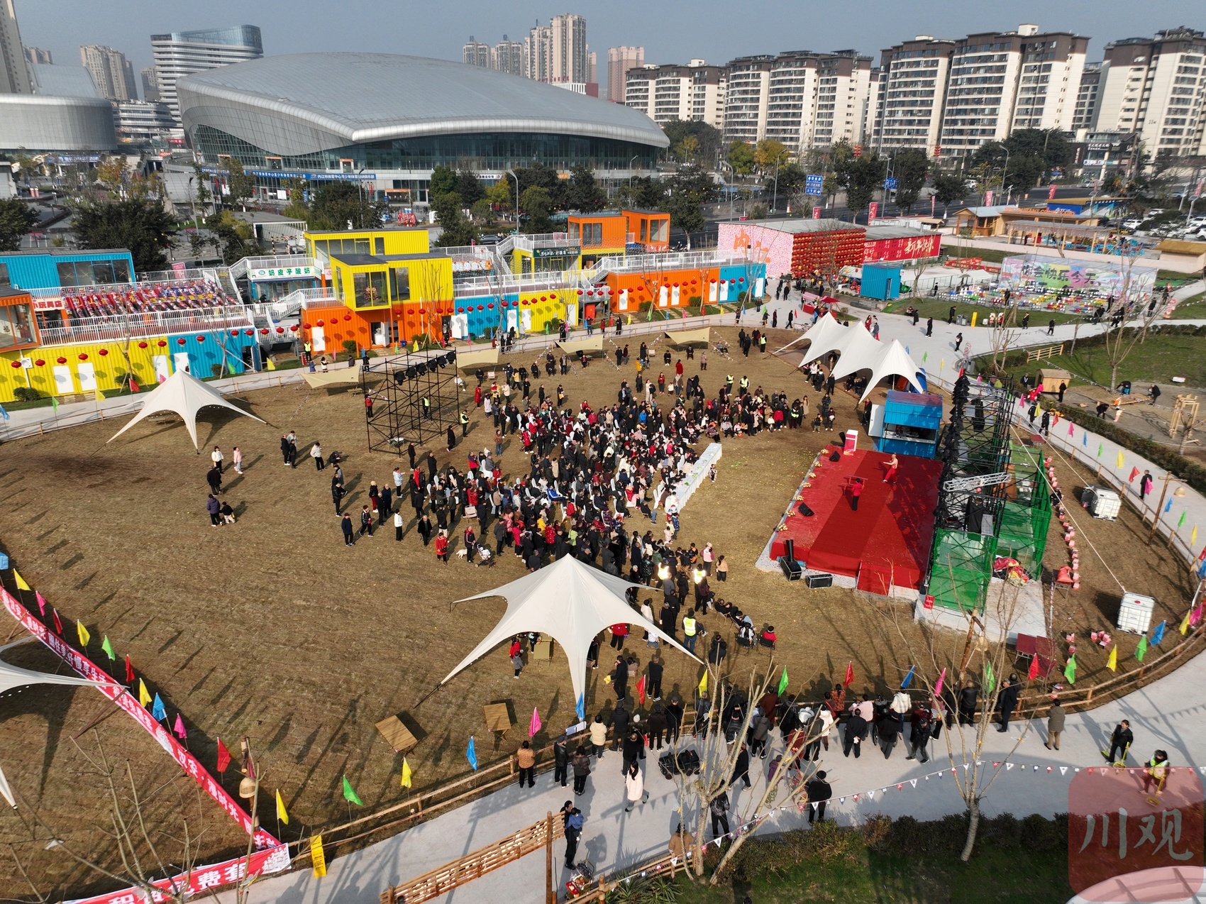 集装箱错落有致,草坪营地绿意盎然,火锅烧烤阶梯露台别具一格,人群往来中,油糕、烤串、豆腐等特色美食香飘四溢。2月11日,位于内江市东兴区的多元潮流休闲空间——“汉安·慢时光”,正式开放。该空间以“慢生活”为理念,融合了生态、文化与商业元素,为即将到来的春节假期注入新的消费活力。