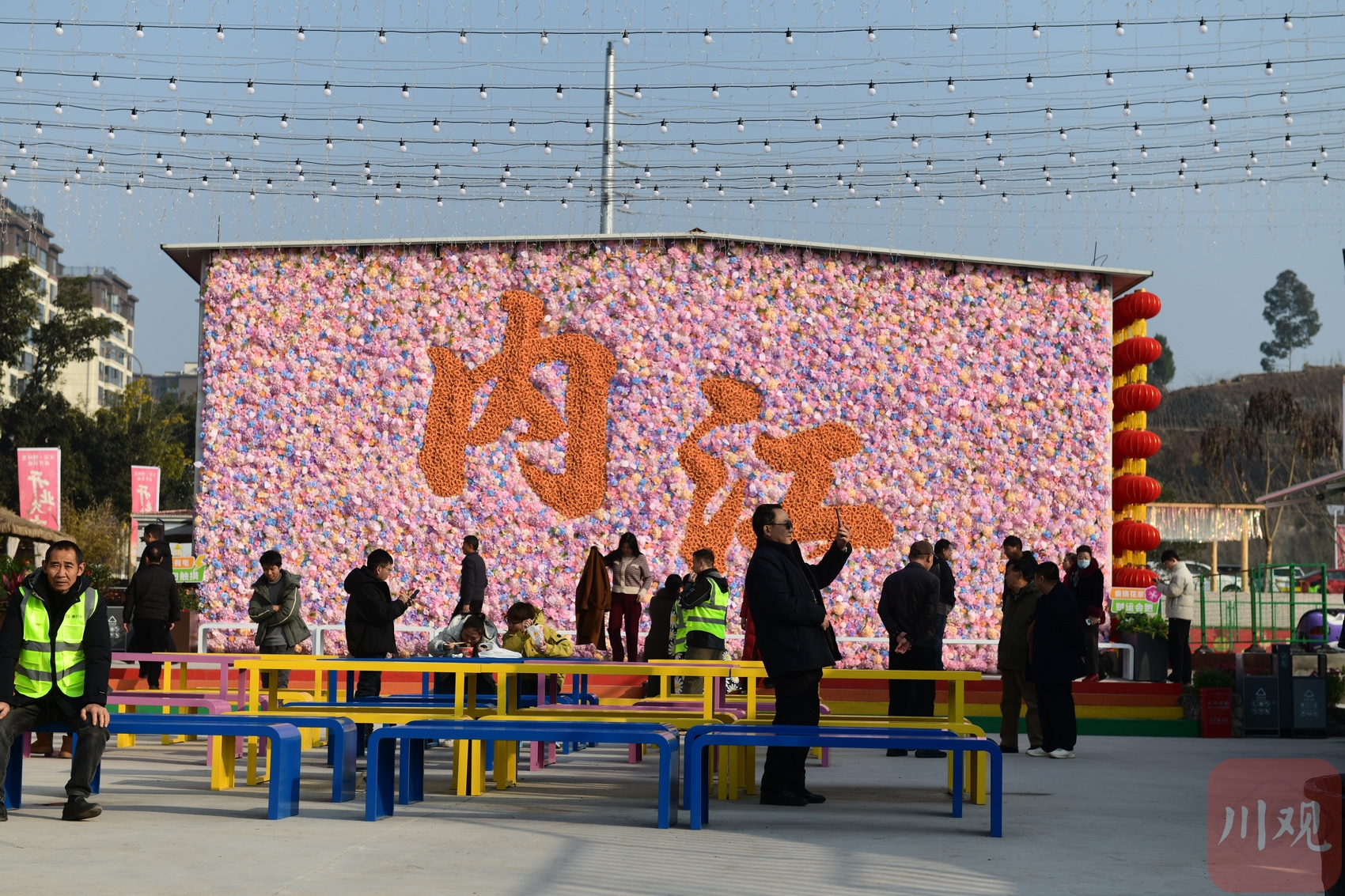 游客在内江市“汉安·慢时光”休闲空间里拍照打卡。