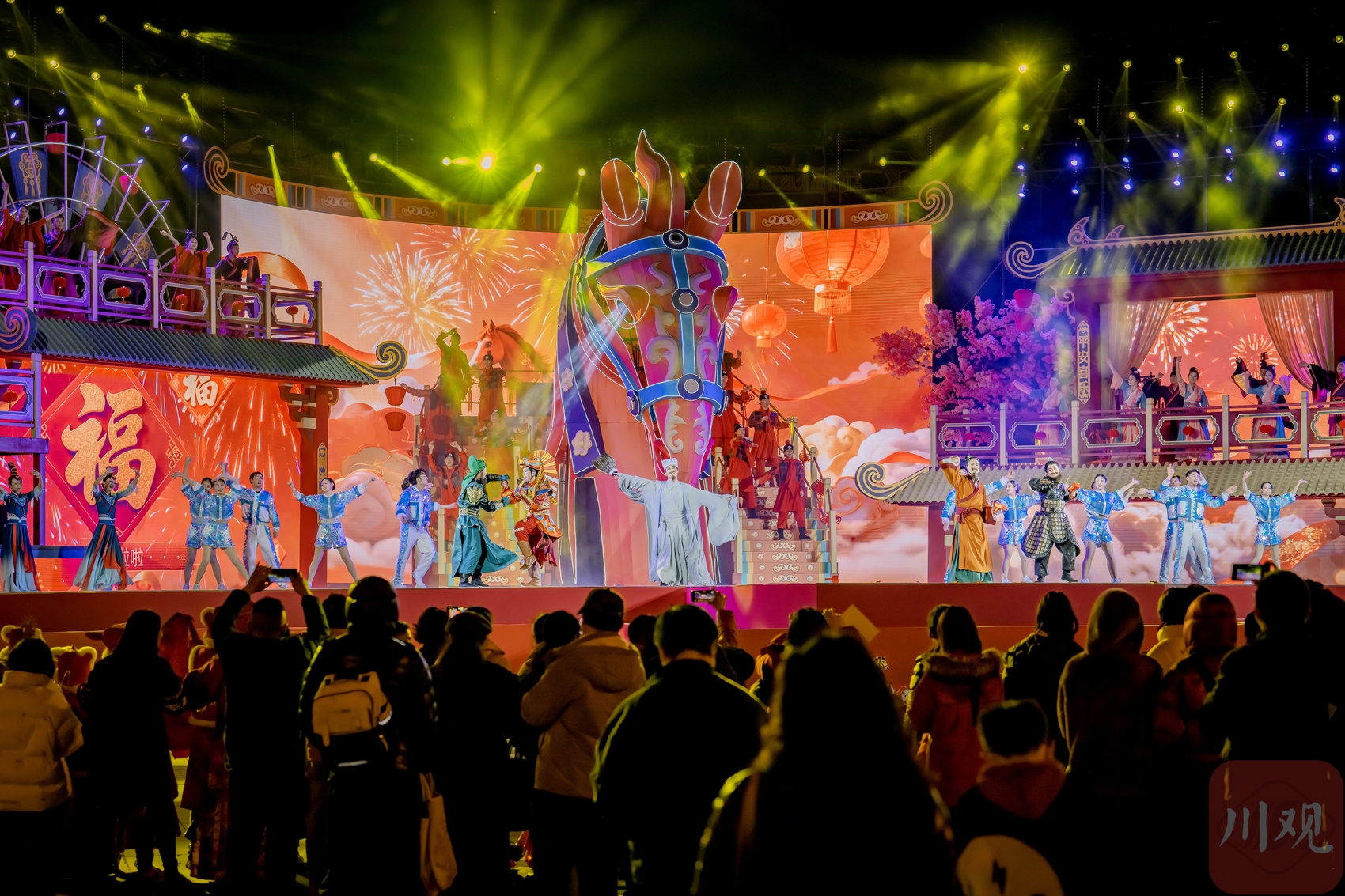 2月11日晚,2026武侯祠成都大庙会试灯活动现场的大型三国主题演出。C视觉签约摄影师 杨容生
