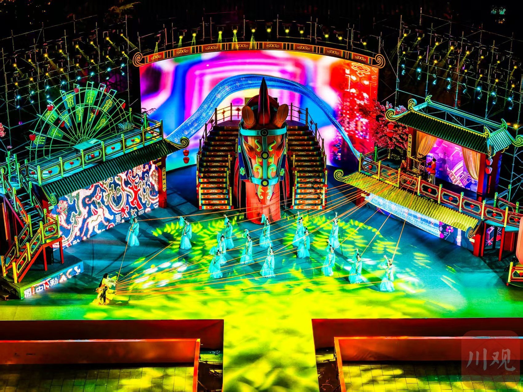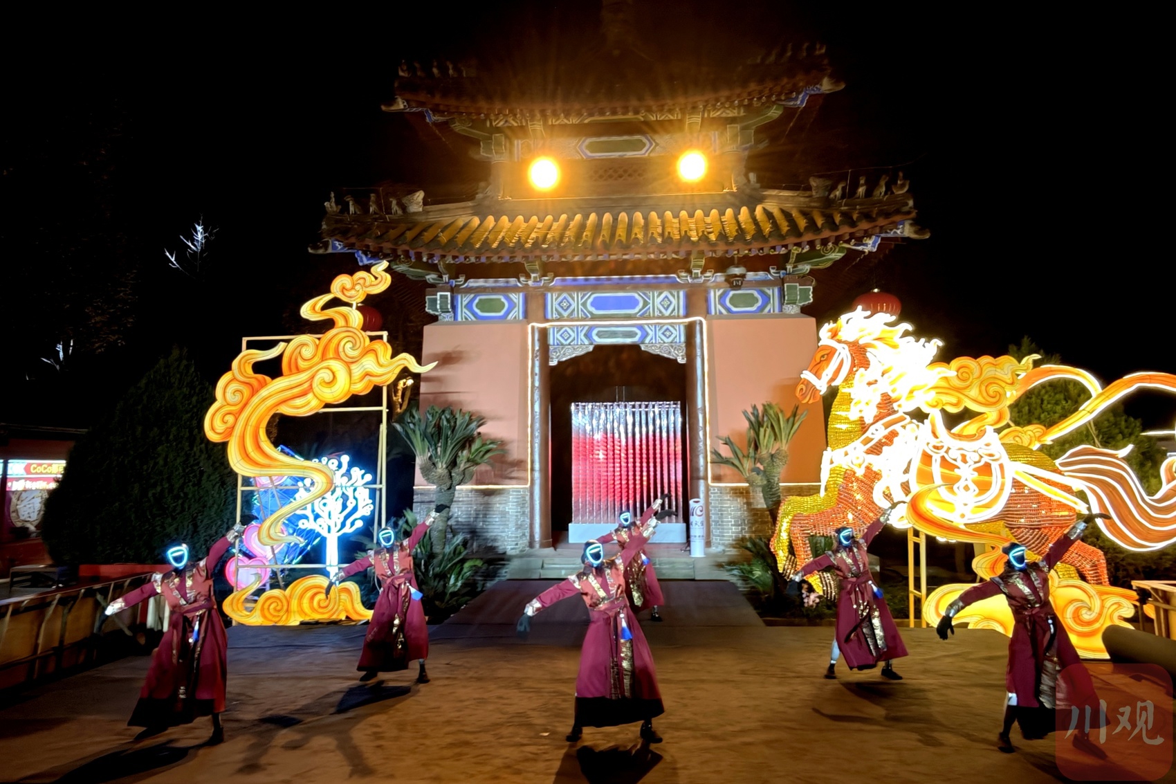 2月11日晚,2026武侯祠成都大庙会试灯活动现场,三国元素的歌舞表演带来一场视觉盛宴。C视觉签约摄影师 邓显杰