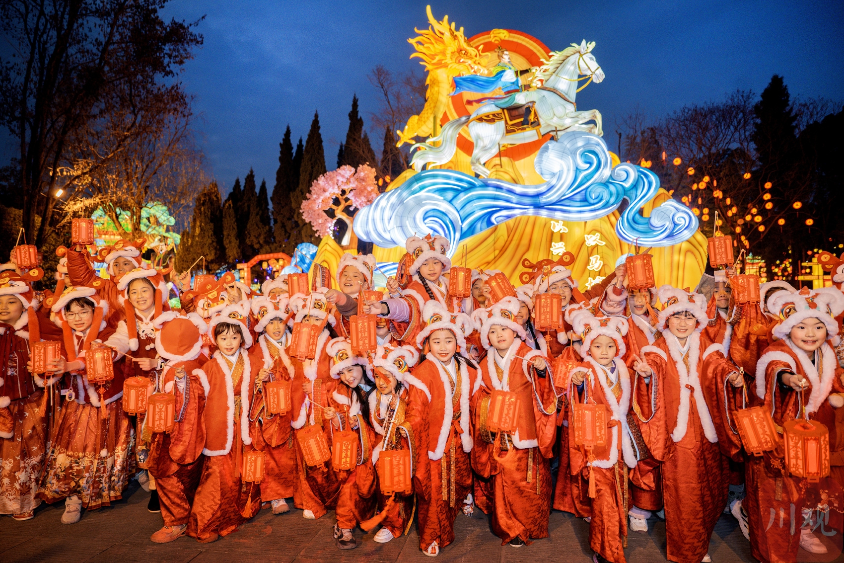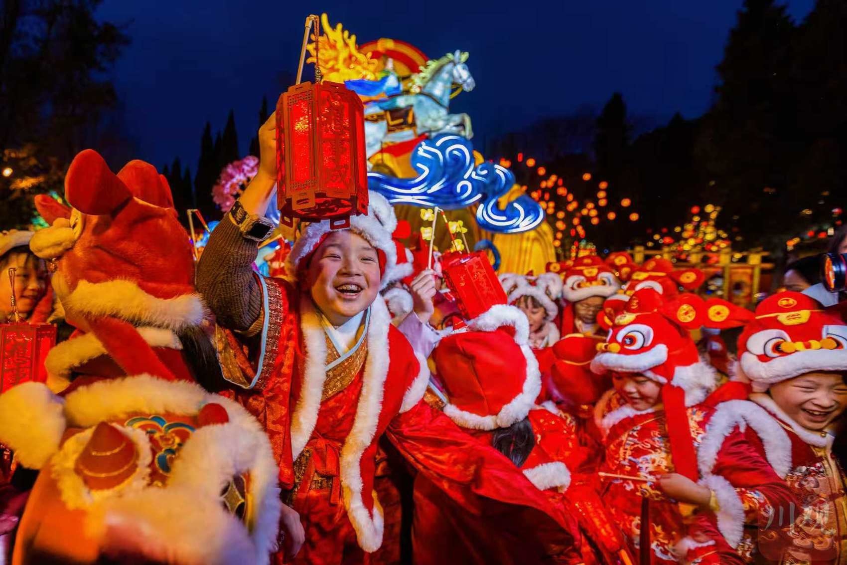 2月11日晚,2026武侯祠成都大庙会开启试灯,现场的小喜神们为活动增添了热闹喜庆的氛围。C视觉签约摄影师 沈军
