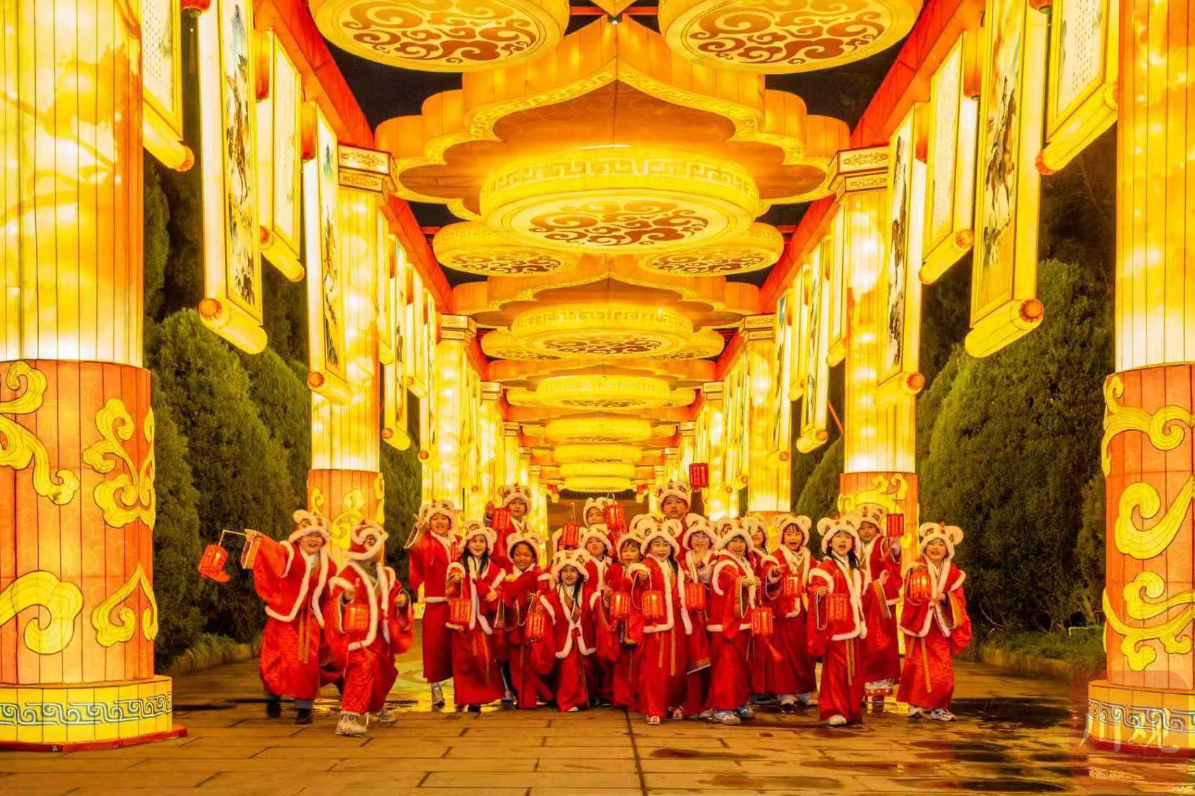 2月11日晚,2026武侯祠成都大庙会开启试灯,现场不仅有各式各样的彩色灯组,还有一群小喜神手提花灯穿行其间。C视觉签约摄影师 张全能