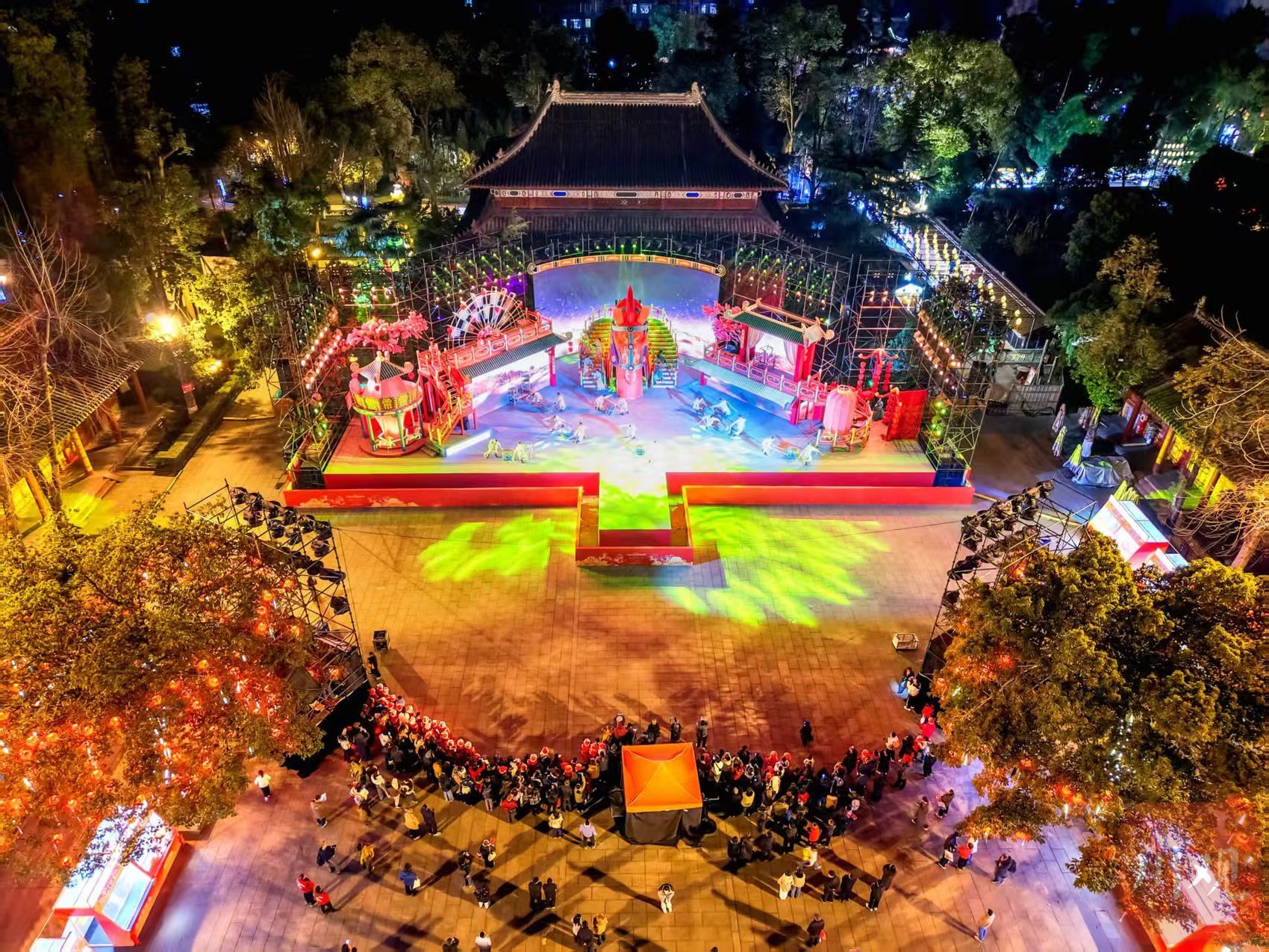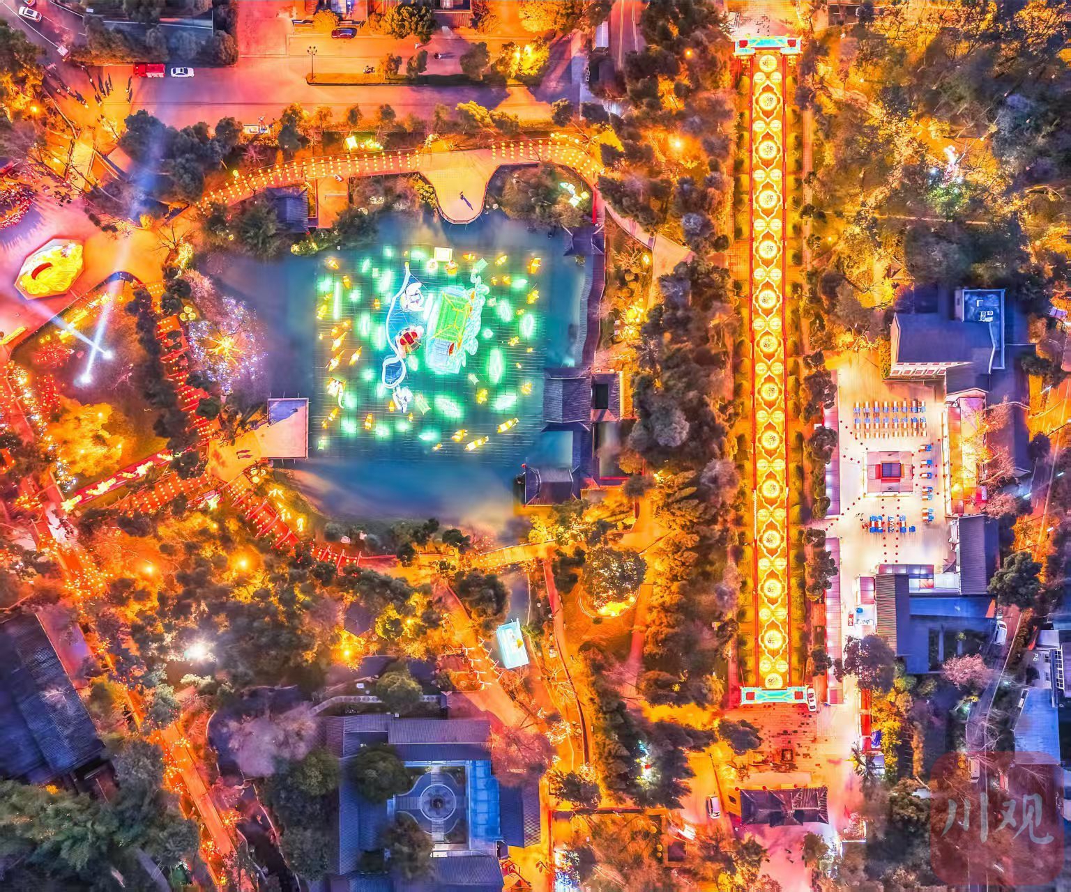 2月11日晚,空中鸟瞰2026武侯祠成都大庙会试灯活动现场。C视觉签约摄影师 邓显杰