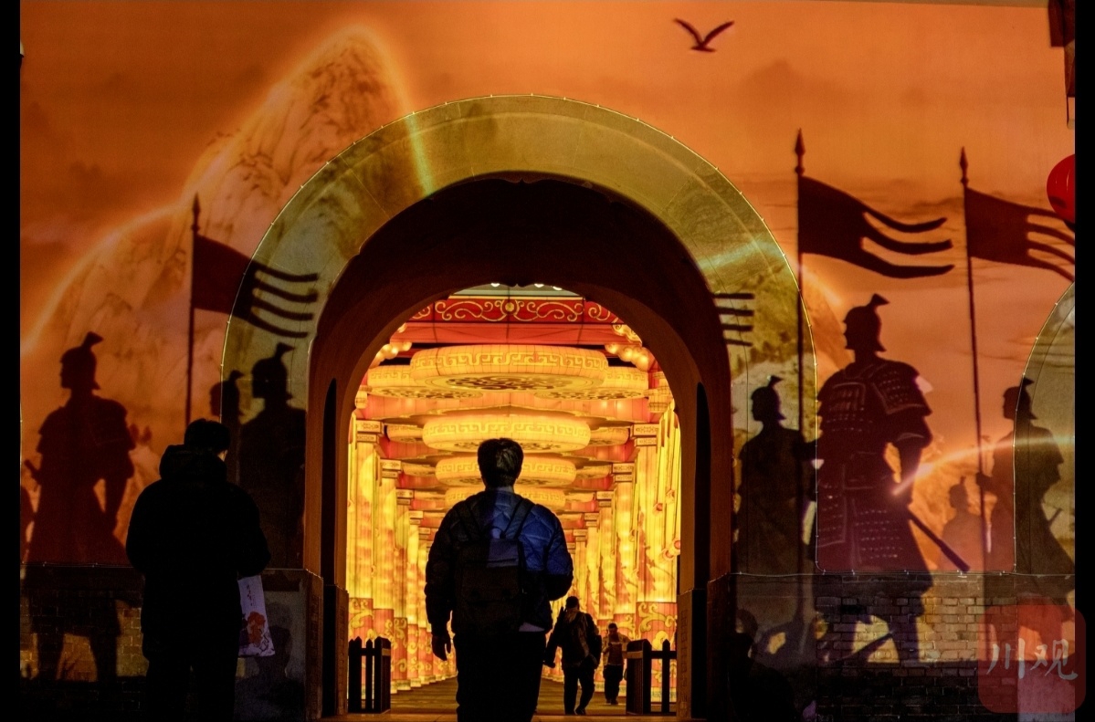 2月11日晚,2026武侯祠成都大庙会试灯活动现场的大型三国主题演出。C视觉签约摄影师 邓显杰