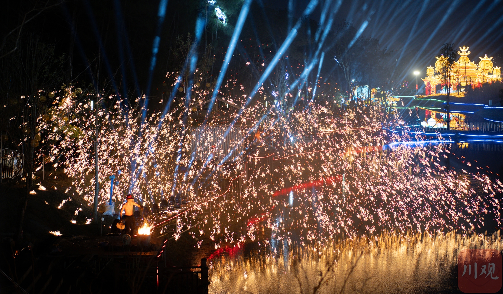 2月11日晚,广元2026女皇故里彩灯会表演打铁花。
