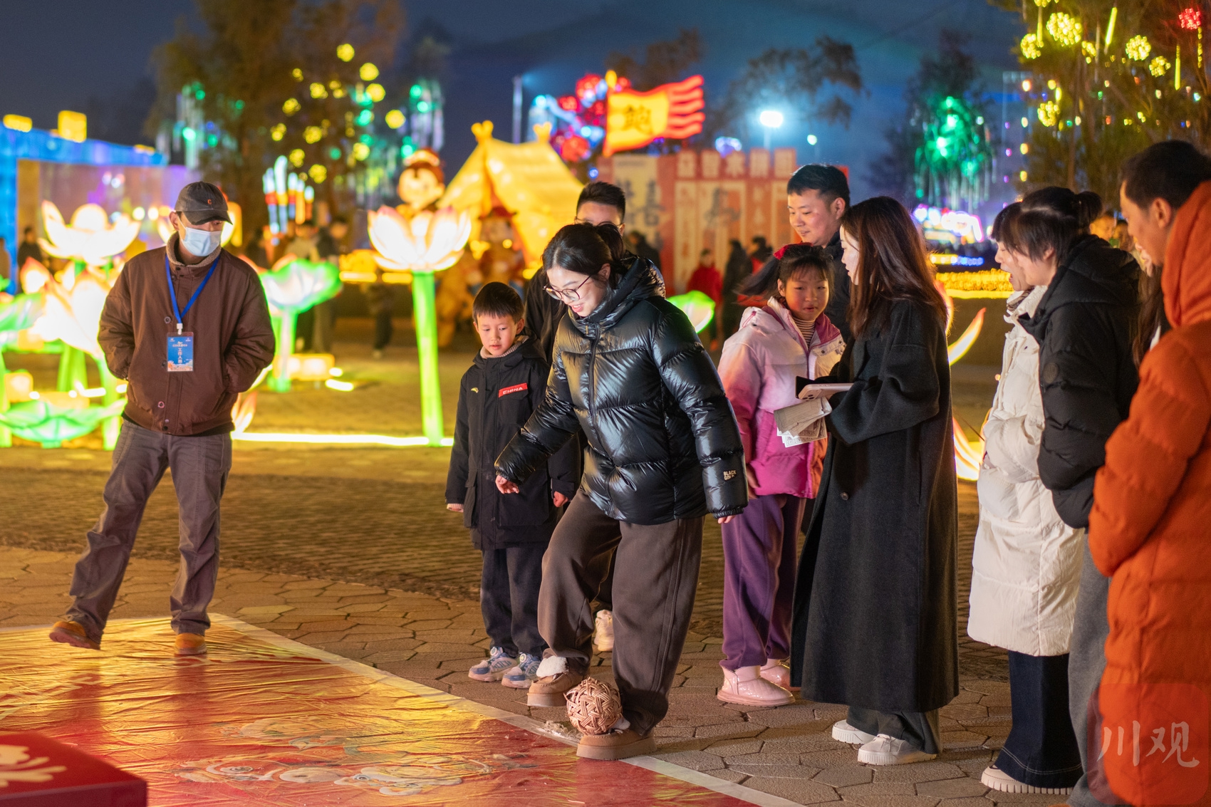 2月11日晚,游客在广元2026女皇故里彩灯会做互动游戏。