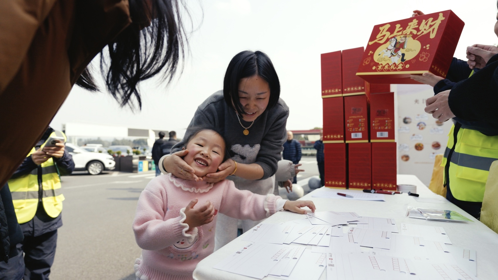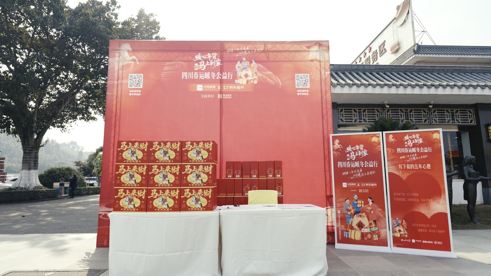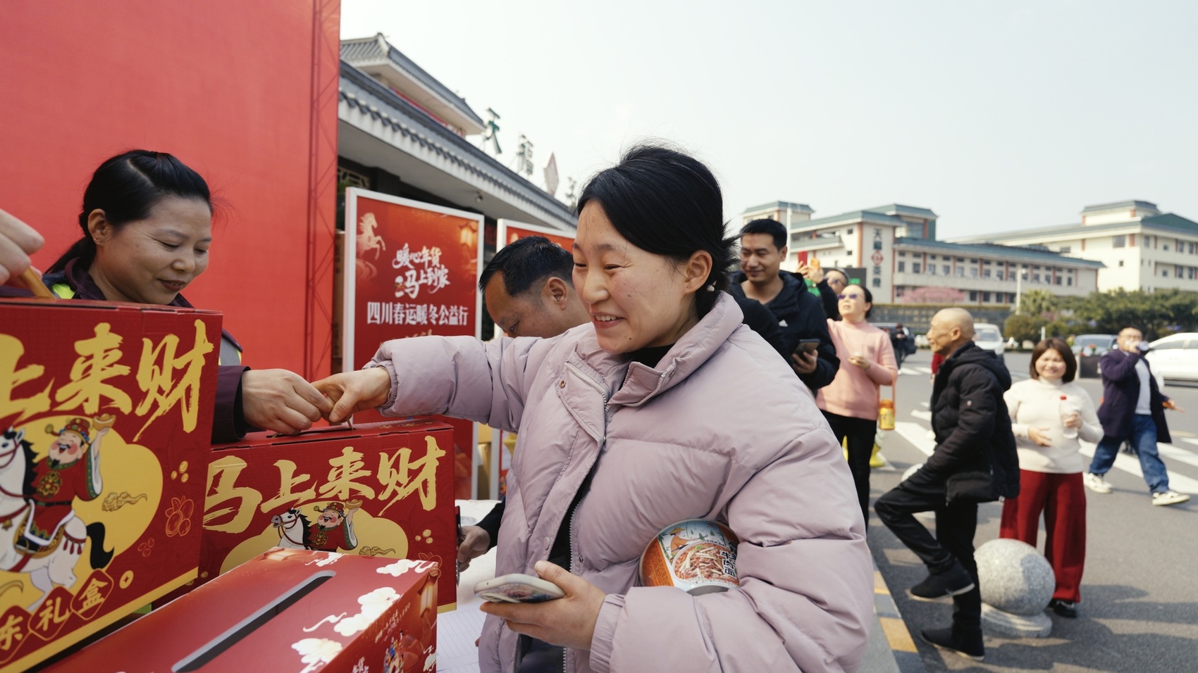 “马上到家了!”2月12日,在乐山夹江天福服务区,从广西南宁返乡的李小林怀里抱着10个月的小儿子,笑得合不拢嘴,“一年到头,就是盼着回家,想家里的父母亲了。”话音刚落,工作人员便递上了京东超市定制的“马上来财”年货礼盒,大红的礼盒映着李小林的笑脸,也让这份归乡的喜悦多了几分温暖。当日,由川观新闻携手京东超市发起的“暖心年货 ‘马’上到家”四川春运暖冬公益行第三站,如约走进乐山夹江天福服务区,将家乡的温情与年味,送到每一位返乡群众、货车司机和春运坚守者手中。