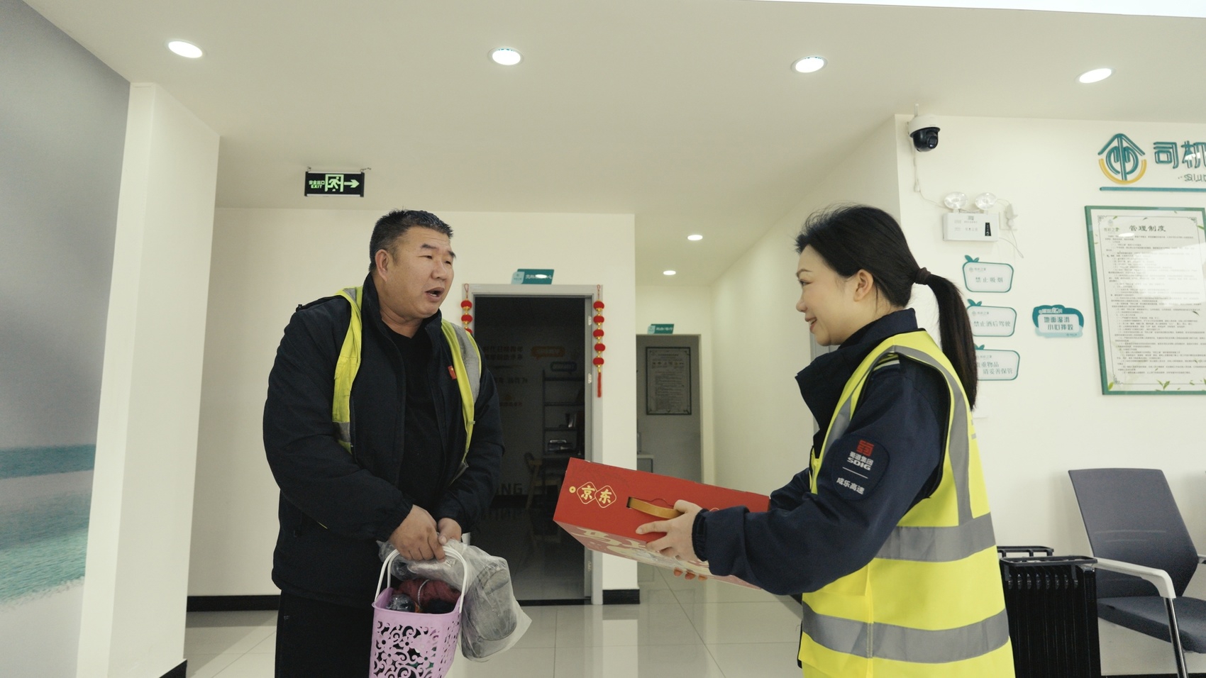 在夹江天福服务区“司机之家”,暖意同样不缺席。常年跑四川省内线路的货车司机翟师傅刚刚洗完澡,便收到了这份暖心年货,他搓了搓略带湿润的双手连连道谢:“实在舍不得花4天时间回安徽老家,一年到头,哪怕是春节都在路上,没想到还有人惦记着我们这些车轮上的人,这份心意不贵重,但比什么都暖心。”