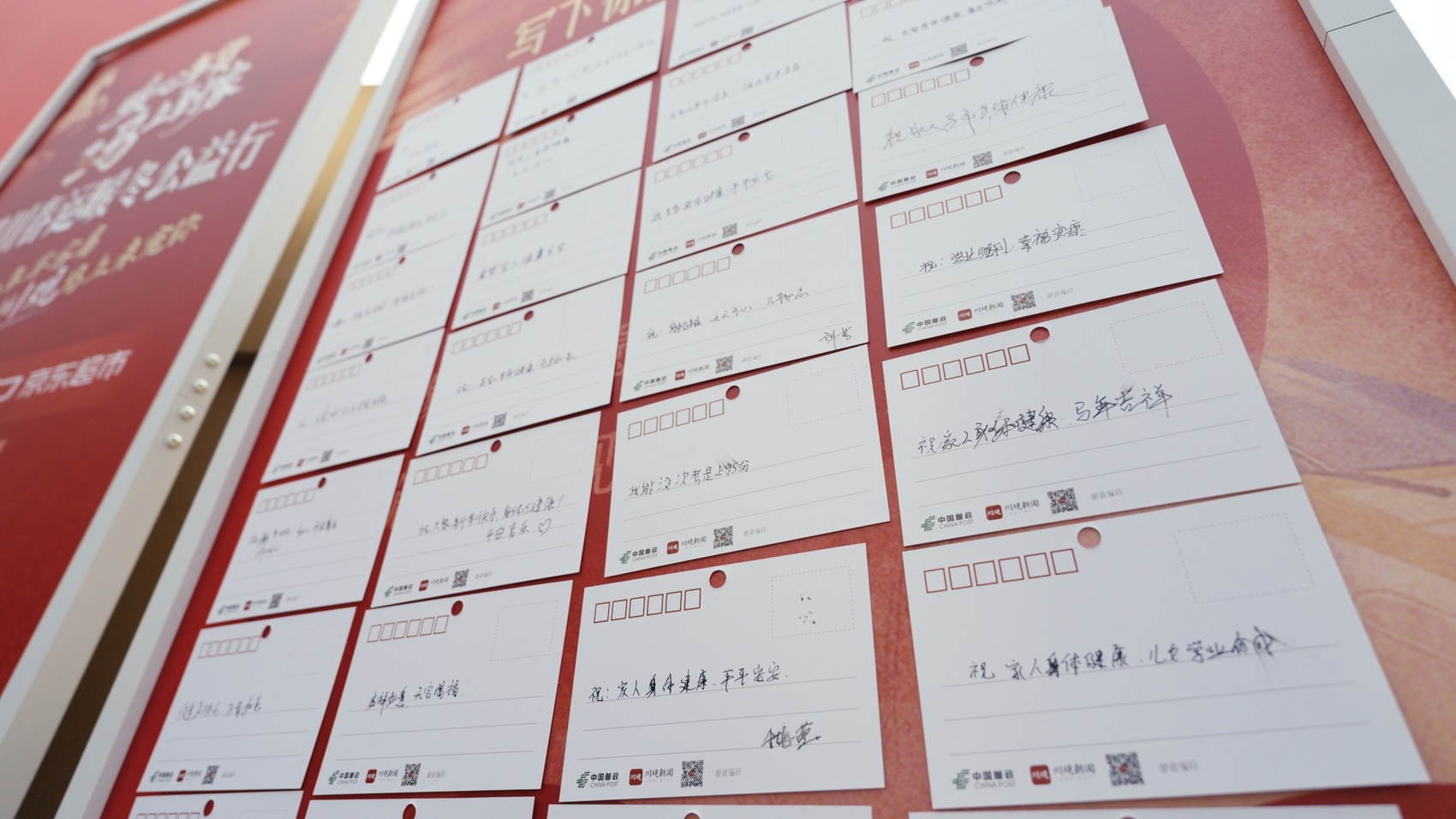 和达州、彭州两站一样,夹江天福服务区也设置了“五年心愿”环节。心愿墙前,一张张心愿卡被整齐张贴,返乡群众、服务区工作人员纷纷提笔,将心中的祝福落笔于纸上。