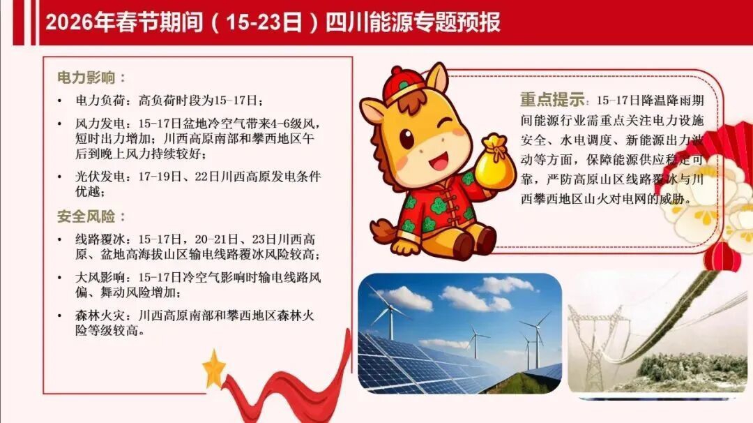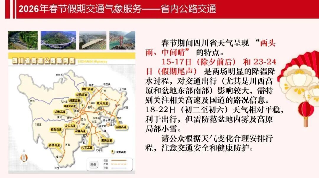春节期间全省总体适宜出行,但川西高原和攀西地区大部森林草原火险气象等级较高,需注意防范。