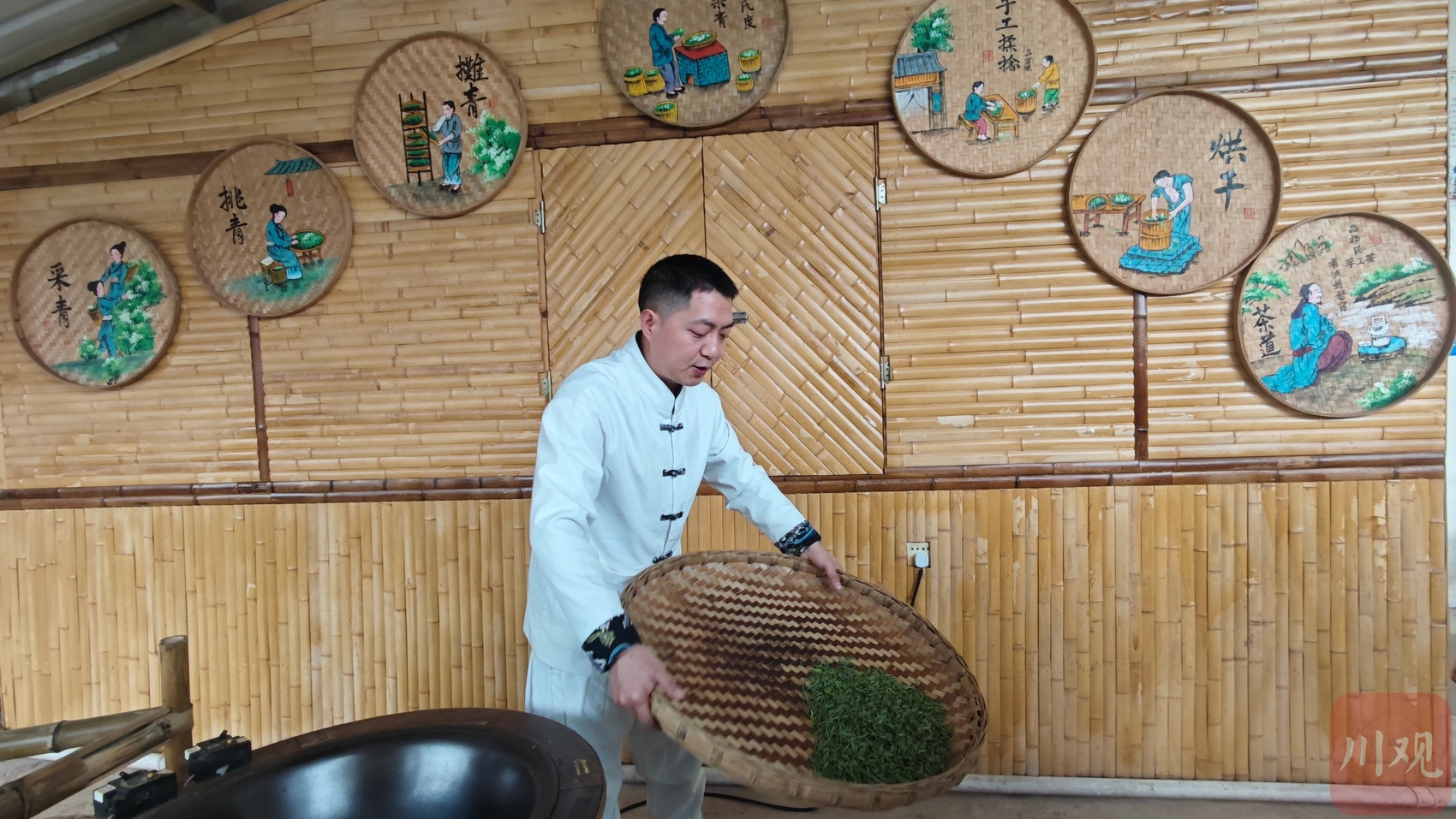 工作人员正在制茶。