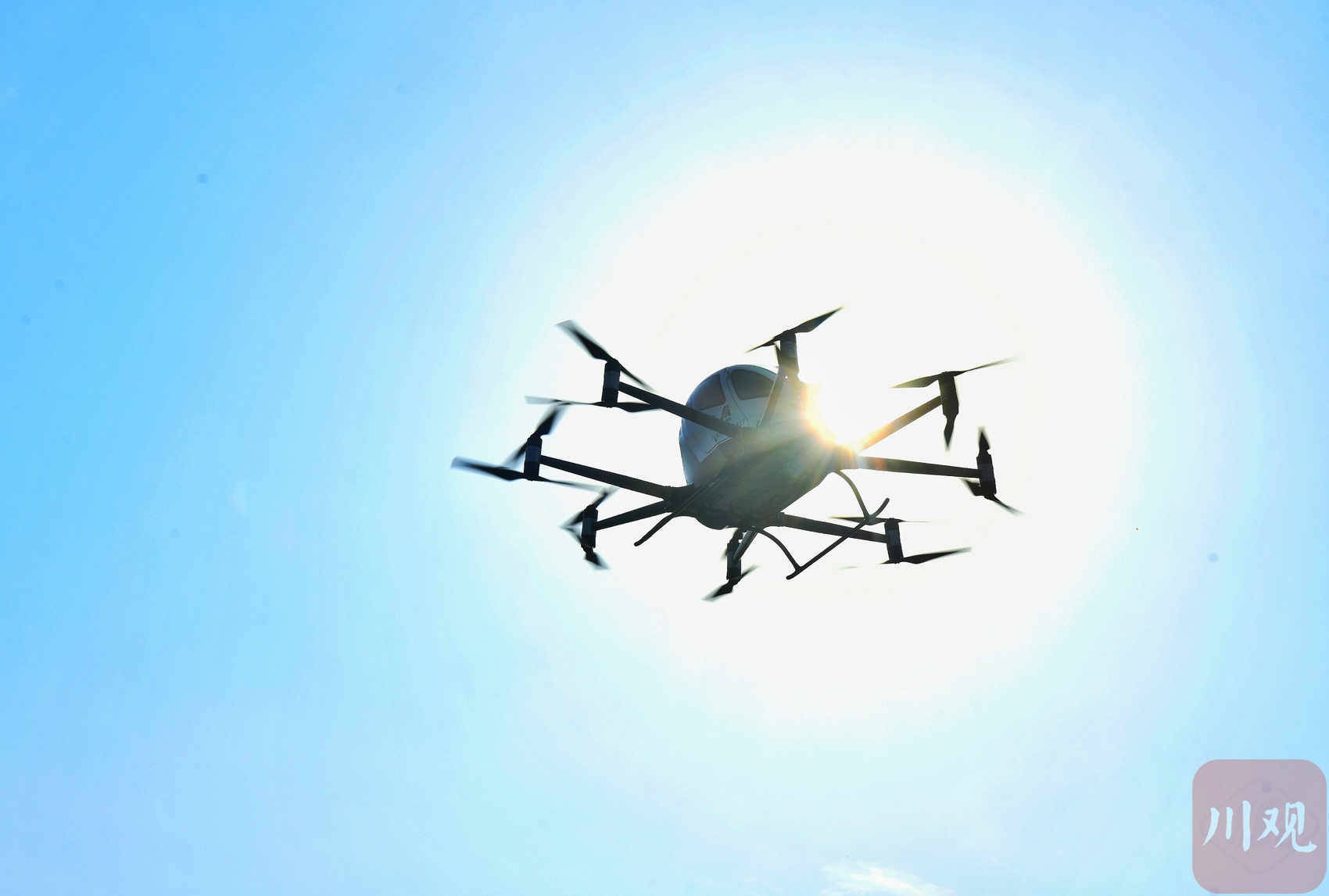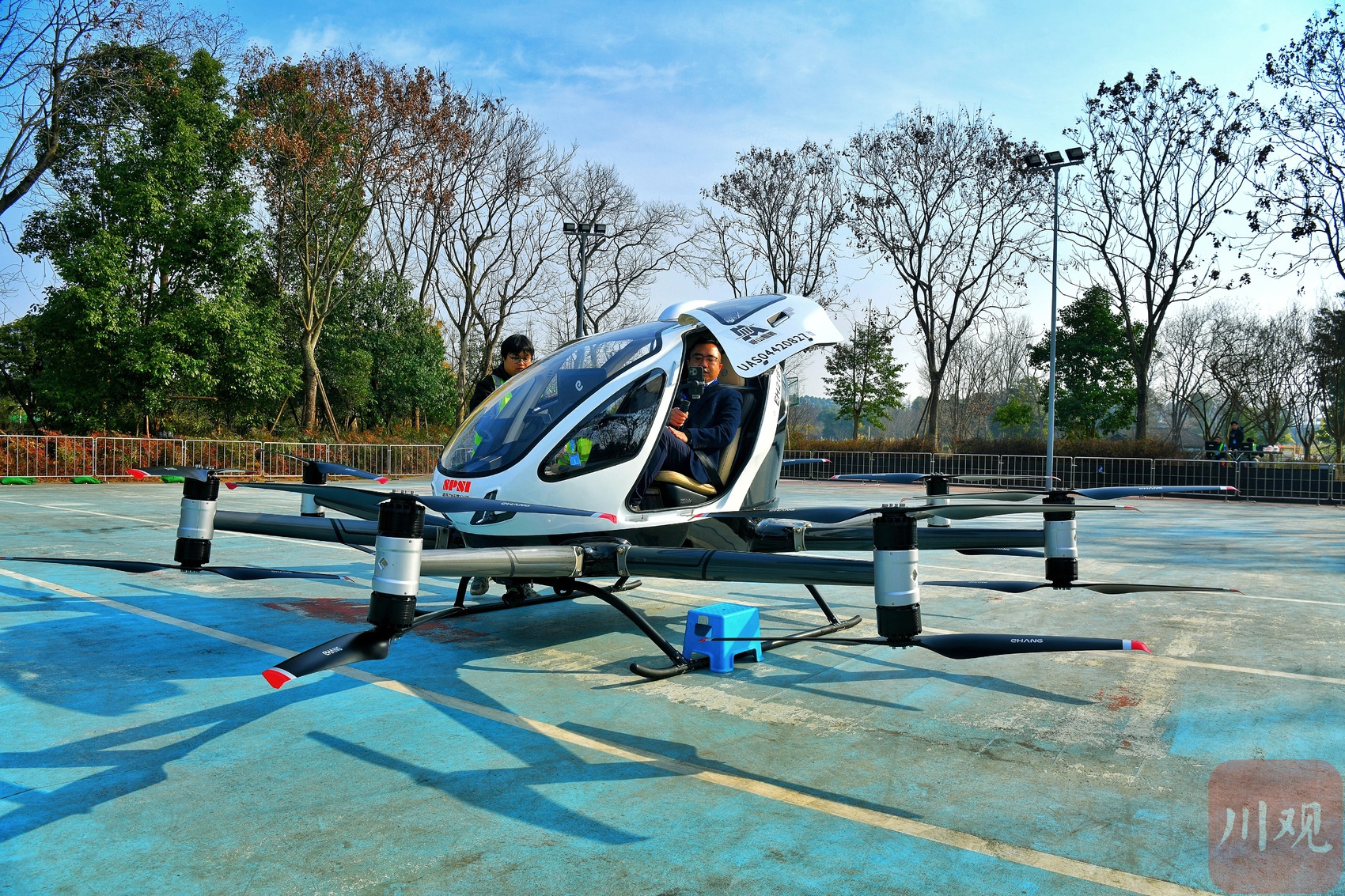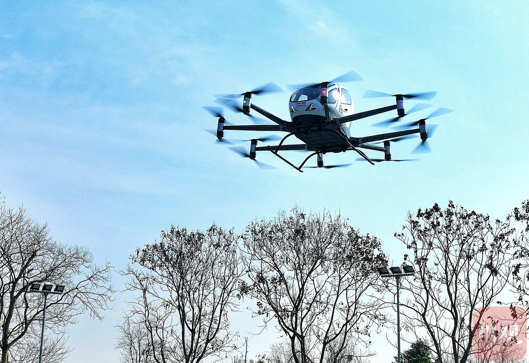 龙志宇乘上载人无人机进行验证首飞。