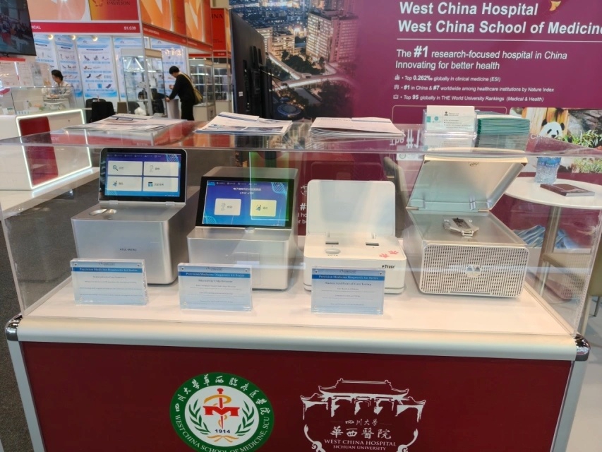 高端医疗器械与核心部件层面,华西医院集中展示微阵列芯片检测仪、半导体基因测序仪、纳米孔基因测序仪等一系列具备自主知识产权的精准诊断装备。生物医药与组织工程领域,重磅展品同样备受关注——脱细胞羊膜作为再生医学代表性组织工程产品,正推动修复重建外科的技术迭代;注射用磷丙泊酚二钠作为新型麻醉药物,是华西医院新药研发成果转化的里程碑;而源自经典名方的六合丹软膏,实现中药新药的标准化与循证化突破。
