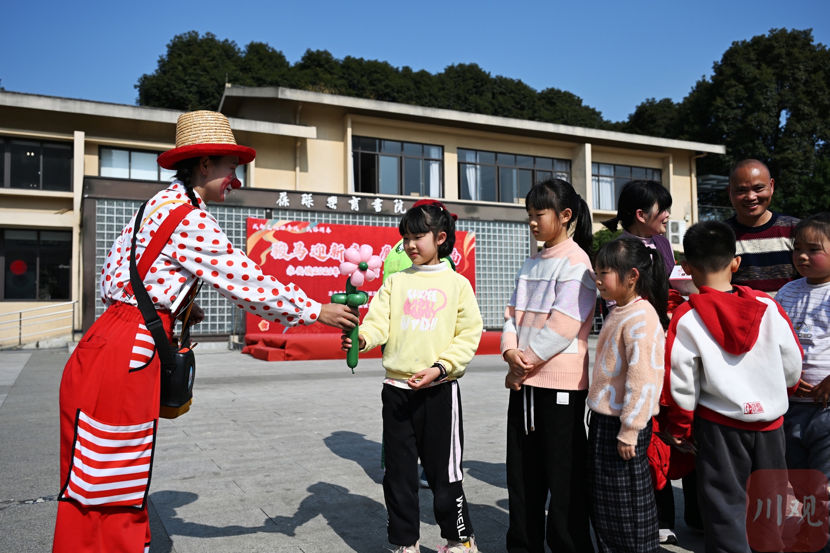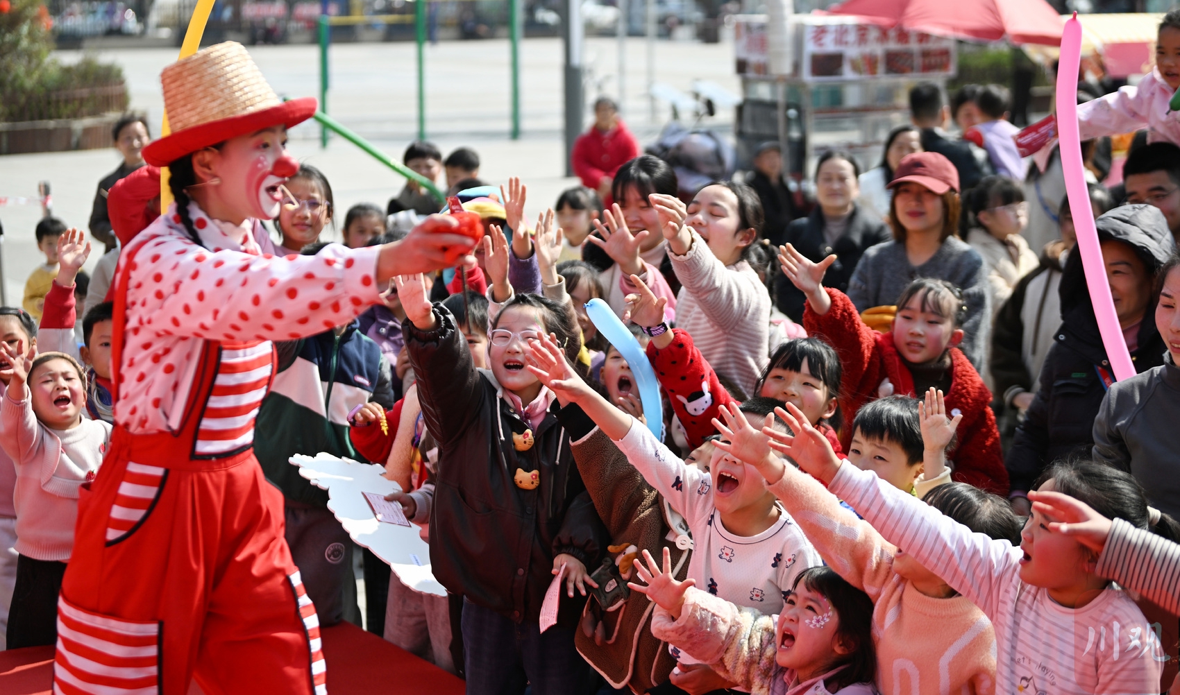 2026年2月13日下午,成都市双流区永安镇幸福广场,孩子们排队领取礼物。