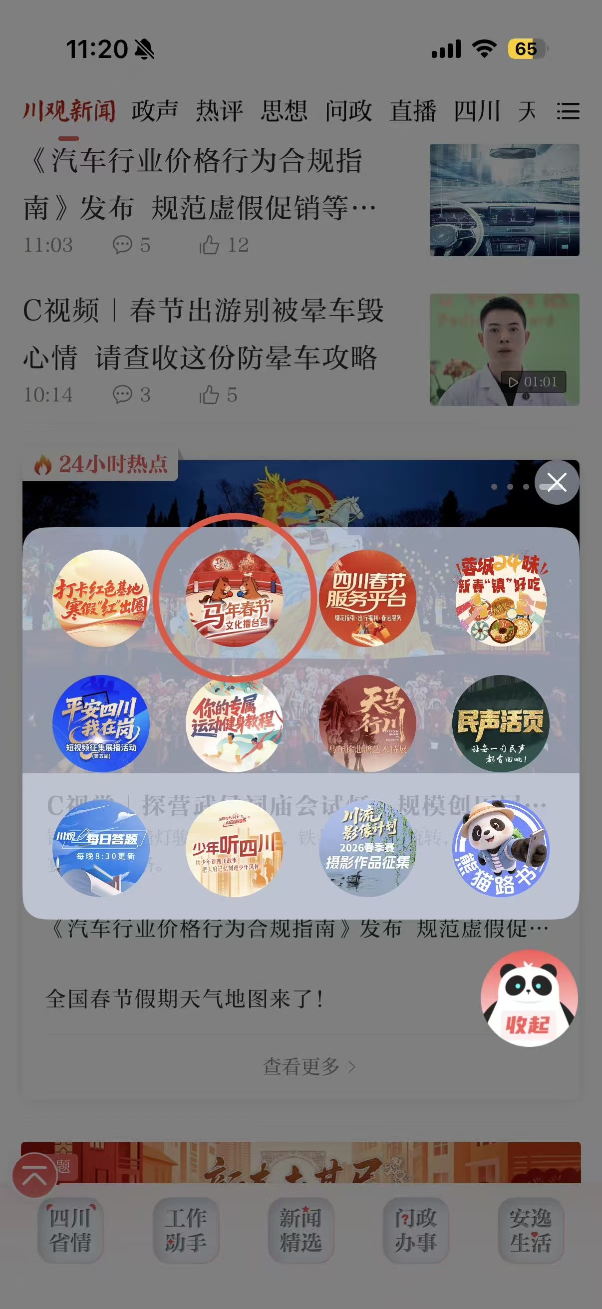 第二步:打开川观新闻客户端,您可以通过以下四种方式参与“马年春节文化擂台赛”活动: