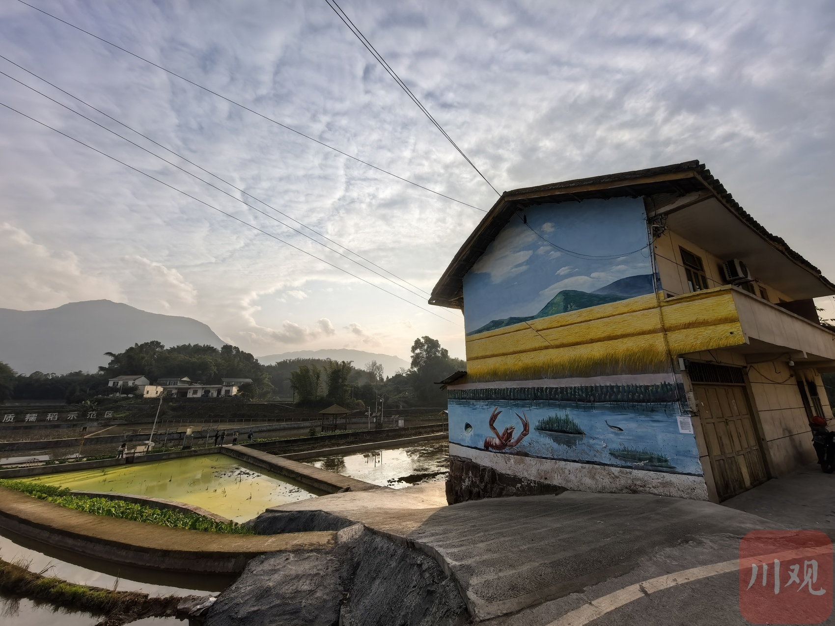 马岭镇龙盘村的“稻鱼虾”墙绘