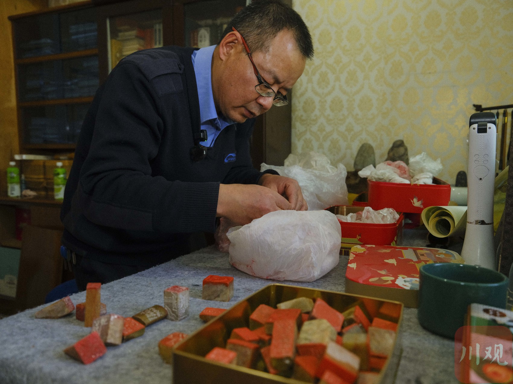 杨泽强在整理印章,关于成昆线的印章共181枚。