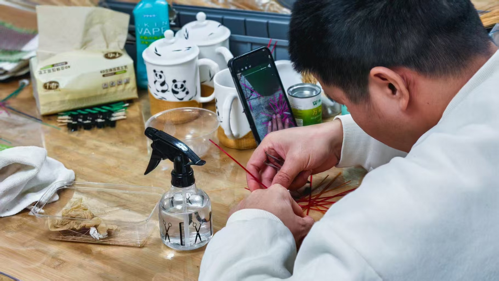 园区里的华琳竹编工作室,就是这款非遗盖碗产品的生产地。创始人刘罗琳是一名听力残疾人,2019年她拜入四川竹编非遗代表性传承人门下,从此开始和细细的竹丝较劲。“竹丝韧劲大,要‘驯服’这倔强的材料,就得比它更倔强。”刘罗琳的父亲刘建文告诉记者,开始学习竹编技艺后,刘罗琳的手指总是带着伤,一编就是几个小时,熬夜更是家常便饭。
