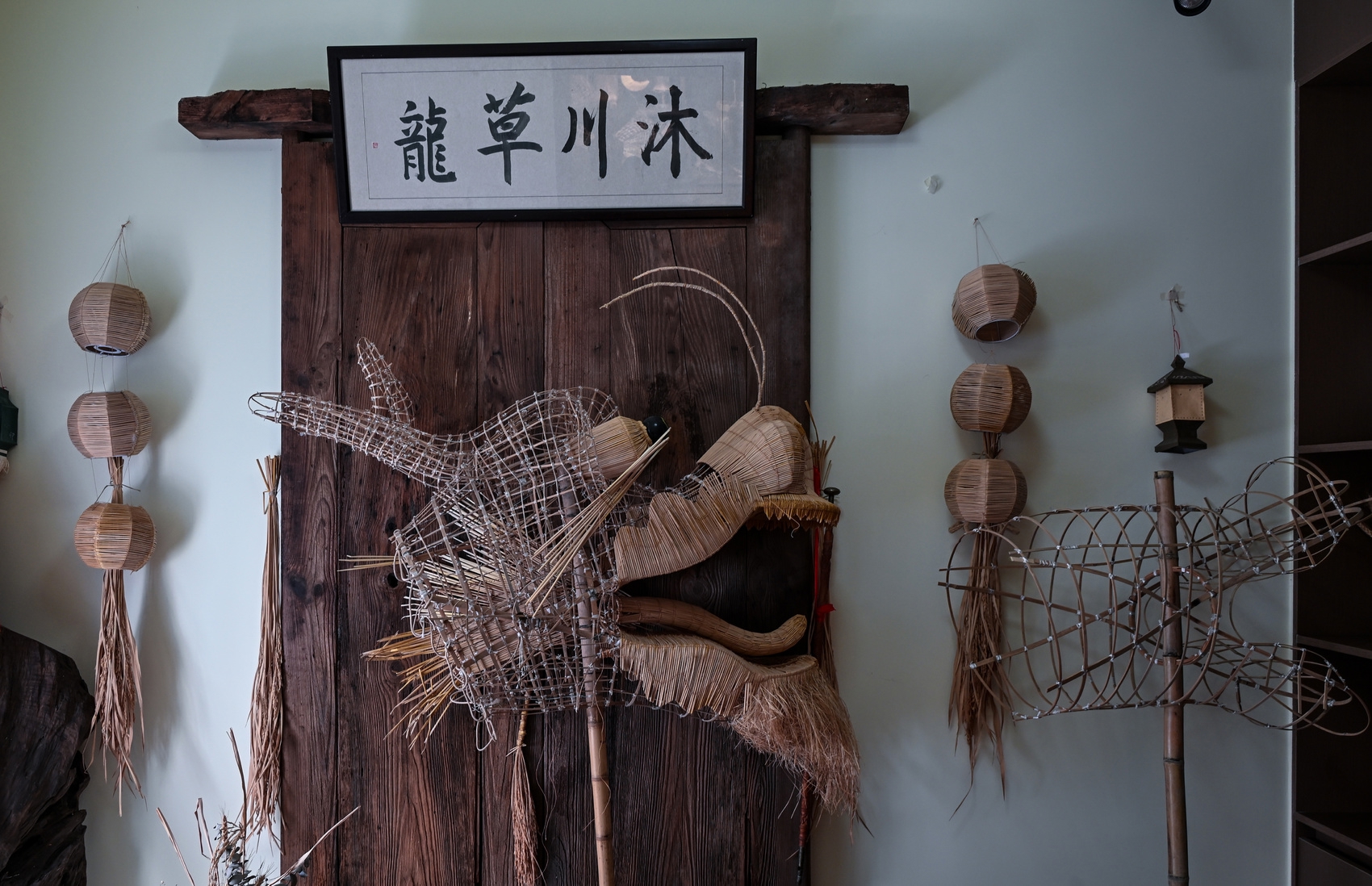 穿过操场,一栋三层的白色教学楼里,沐川草龙编扎教室就在三楼,二楼还设了沐川草龙文创工作室。