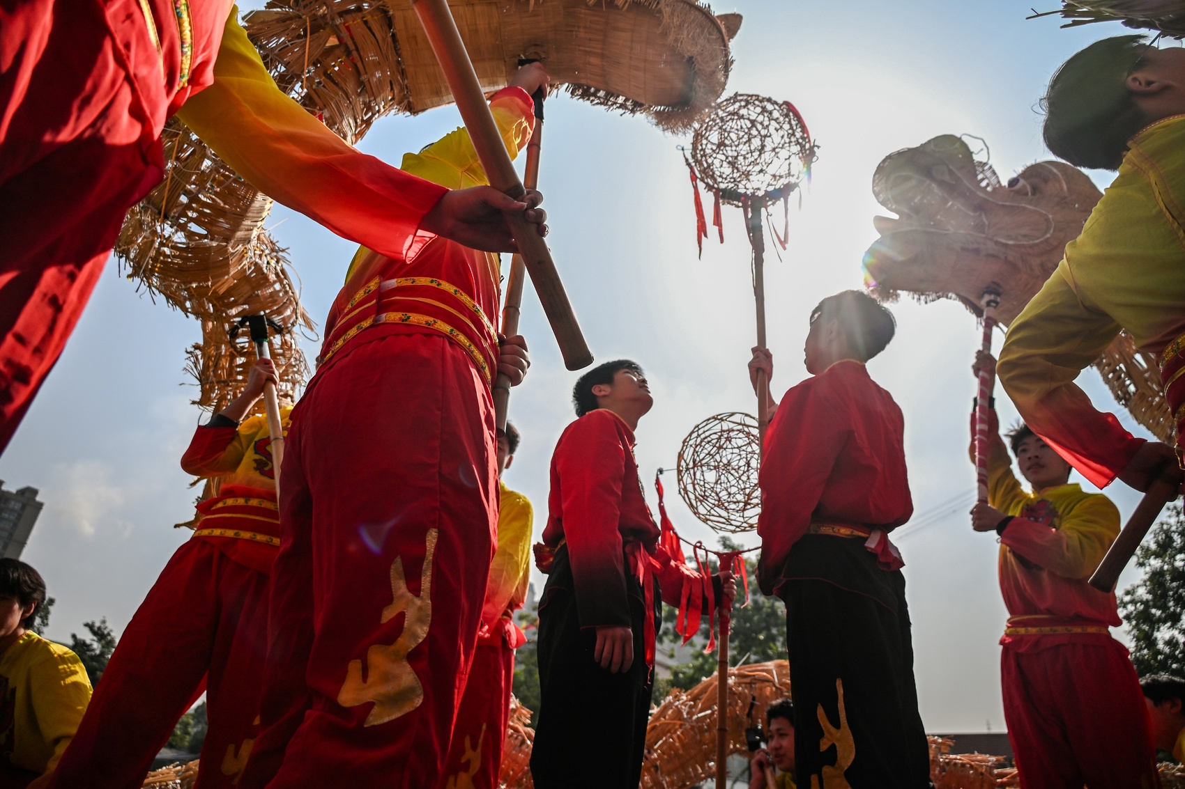 穿透薄雾的暖阳,映照在舞动的龙头上。少年们舞靴踩地发出的细密沙沙声,宛如富有节奏的乐曲。在未来的二十多天,他们舞动的草龙将多次和游客与观众见面。
