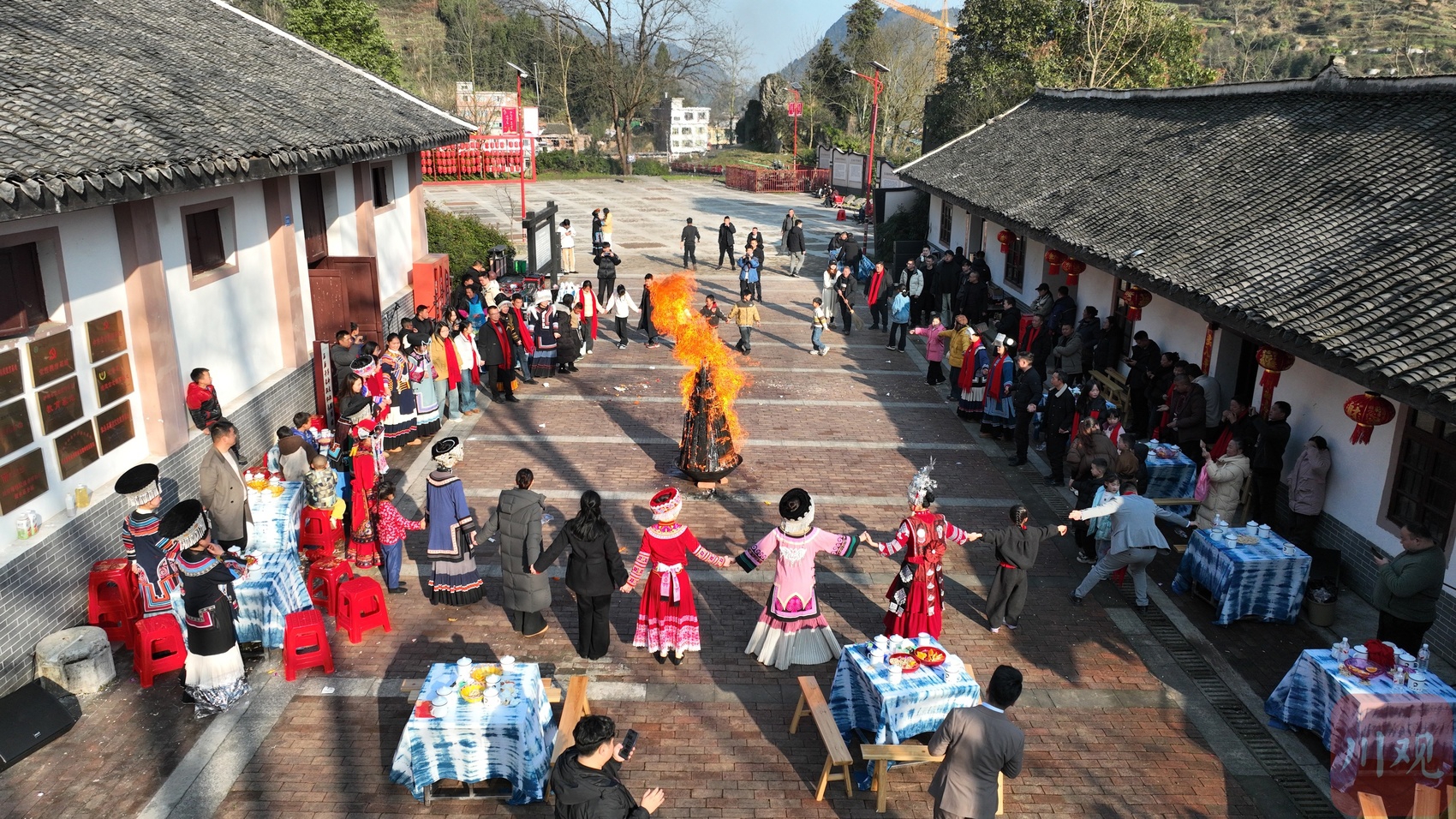 2月11日,泸州市叙永县石厢子彝族乡“过开心年”陈列馆处,一墙之隔,两个中国。91年前,石厢子还只是一个仅有400多人的村庄,中央红军在这里度过了长征路上唯一的一个春节。91年后,这里总人口9339人,2024年全乡GDP达1.52亿元。