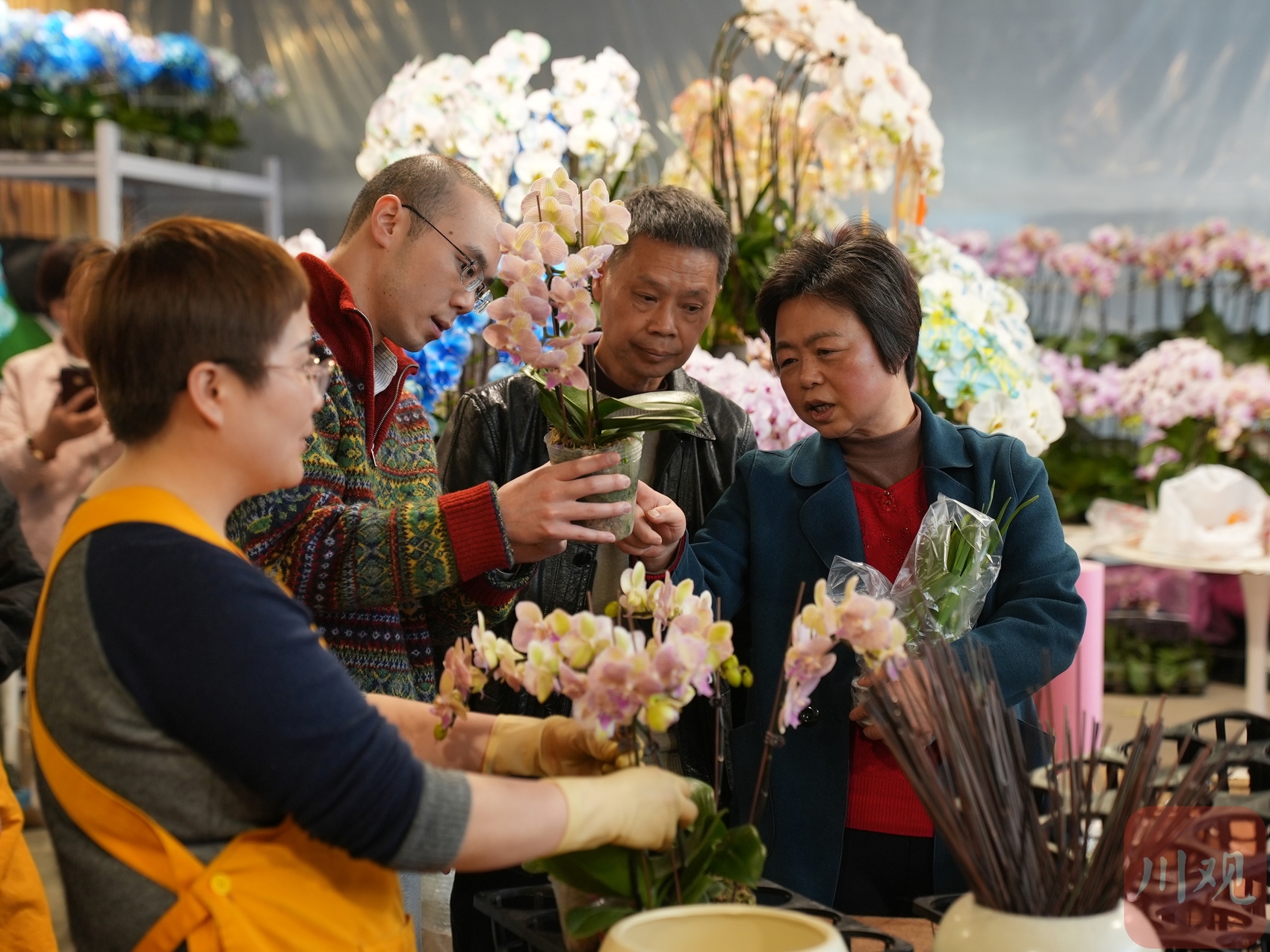 三圣花市企划经理王平向四川在线记者介绍,这段时间是销售旺季, “蝴蝶兰、大花蕙兰、冬青这几种花卉卖得好。”商户刘丹告诉记者,这些花儿的寓意很好,放在家里代表着丰盛祥和、红红火火,市民的选购欲望很强。