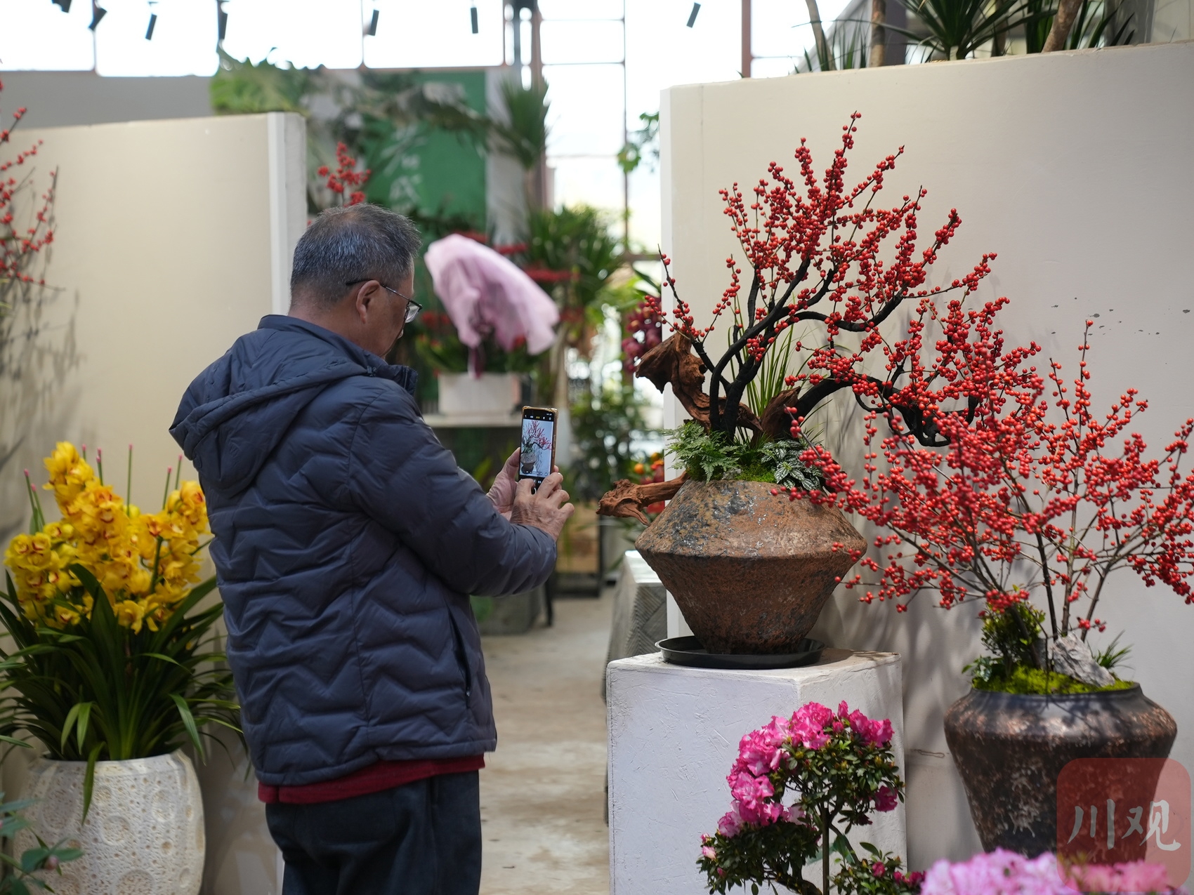 市场内,代表“红火”的冬青。