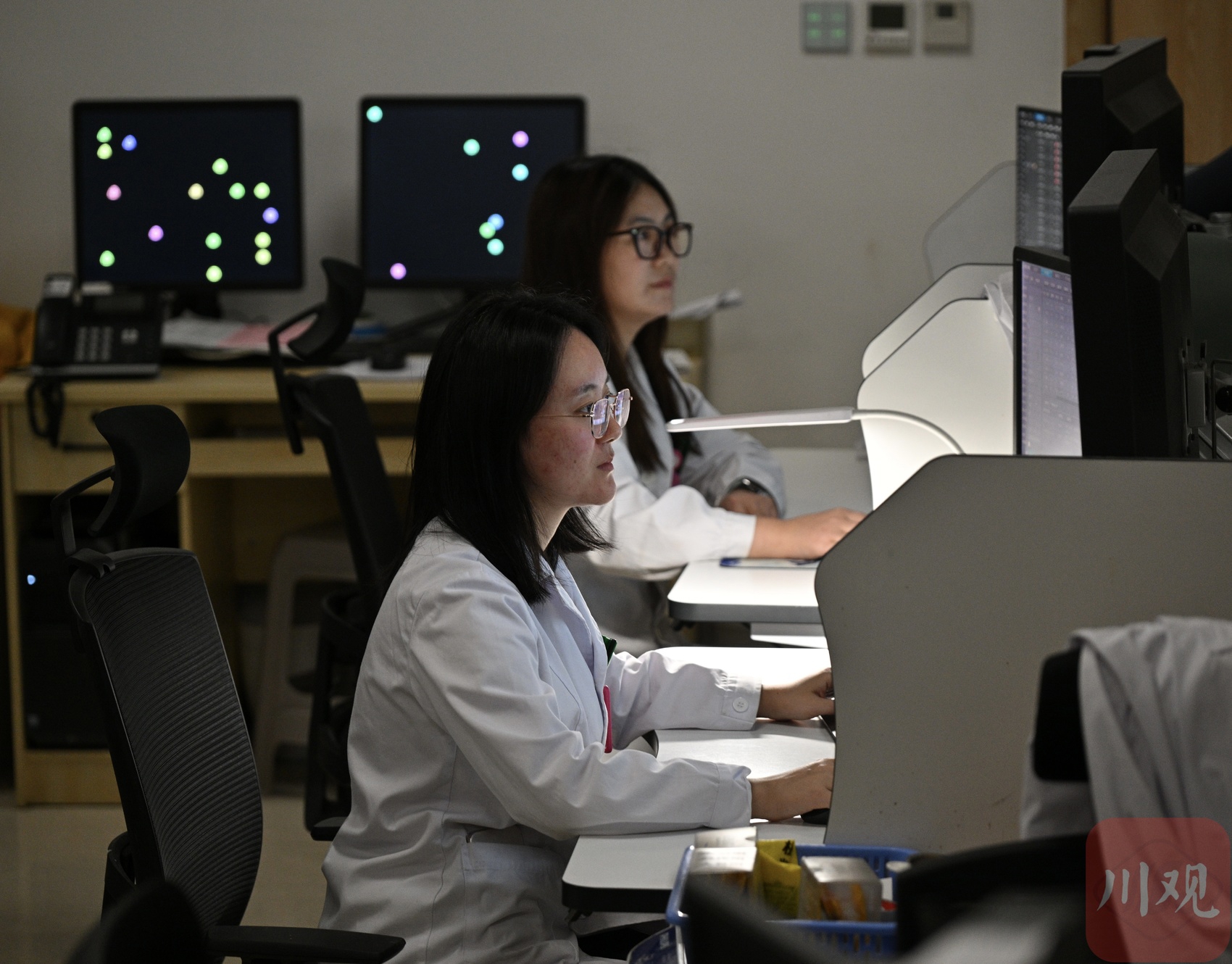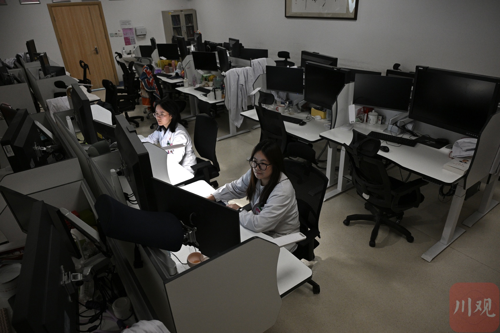 2月16日,成都市妇女儿童中心医院放射科影像诊断室内,没有节日的喧嚣,只有电脑主机轻微的嗡鸣声。医师刘莲花和张倩如常坐在屏幕前,她们的“年味”,是成千上万帧黑白影像交织成的无声世界。