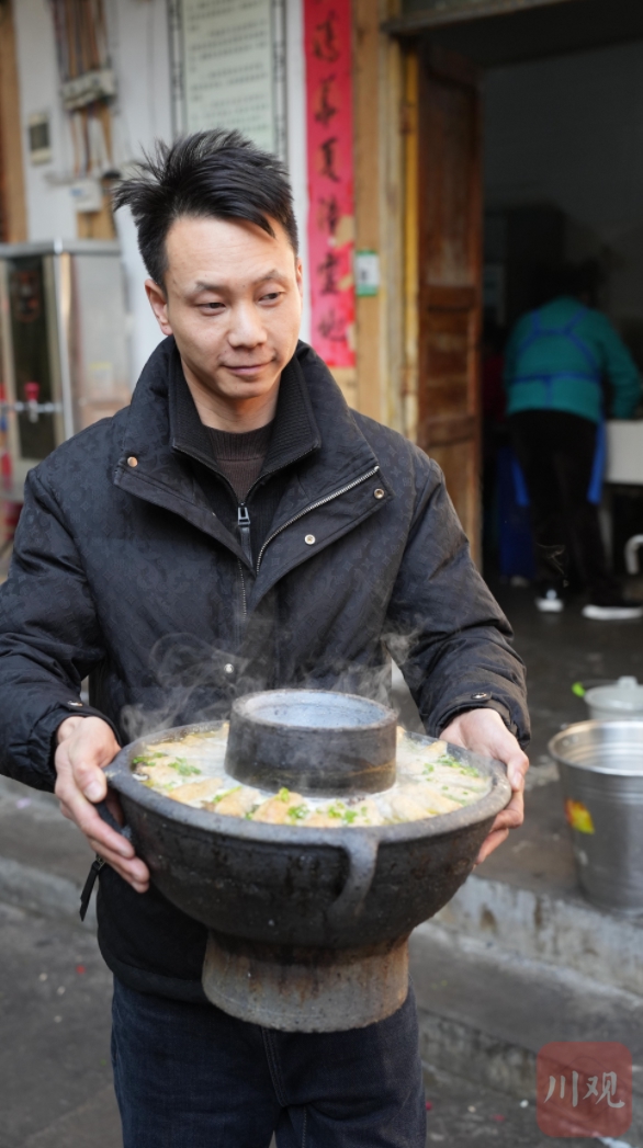 刘松口中的锅,是高县土火锅,这是川南“请春酒”压轴菜必不可少的用具。36岁的刘松是高县土火锅制作传承人,今天,他又来送锅了。
