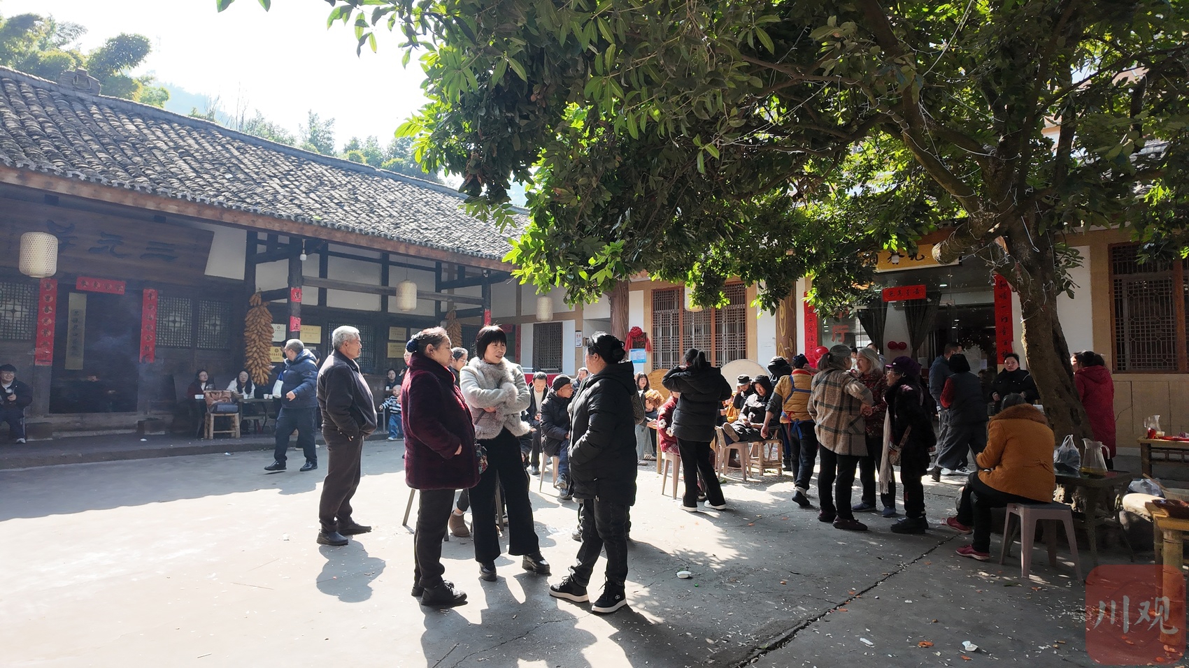 聊天中,日头渐高,“三元号”农家乐的院子也渐渐被八仙桌填满。