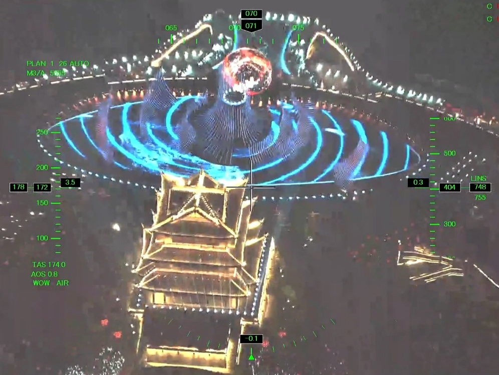 经过三天准备,四架“翼龙”被推出机库。当晚,伴随着放飞指令下达,“中国红”腾空而起。地面站团队通过翼龙搭载的光电吊舱,看到了晚会现场的璀璨灯光,最终,翼龙平稳返航,成功完成了此次飞行表演任务。