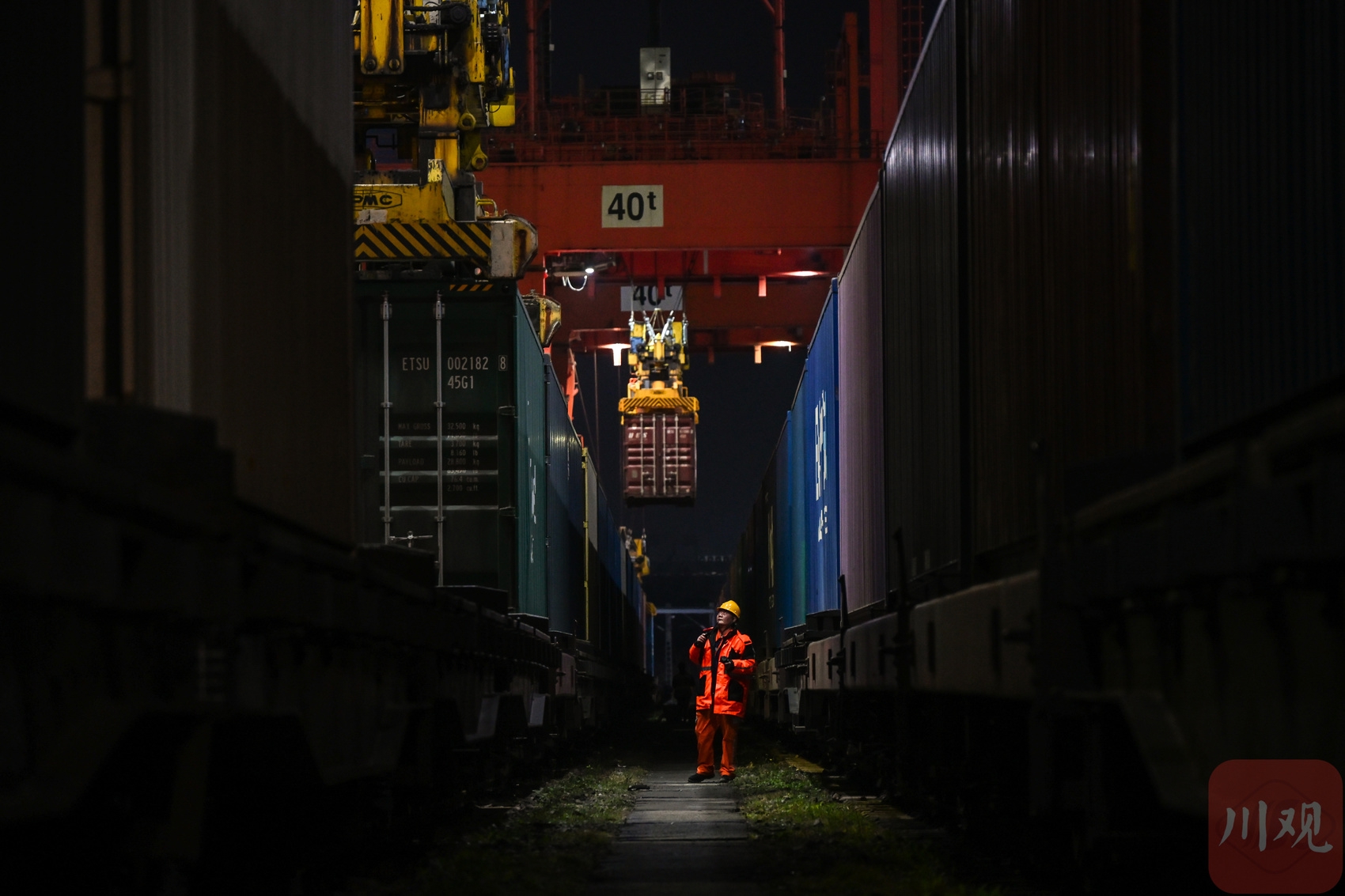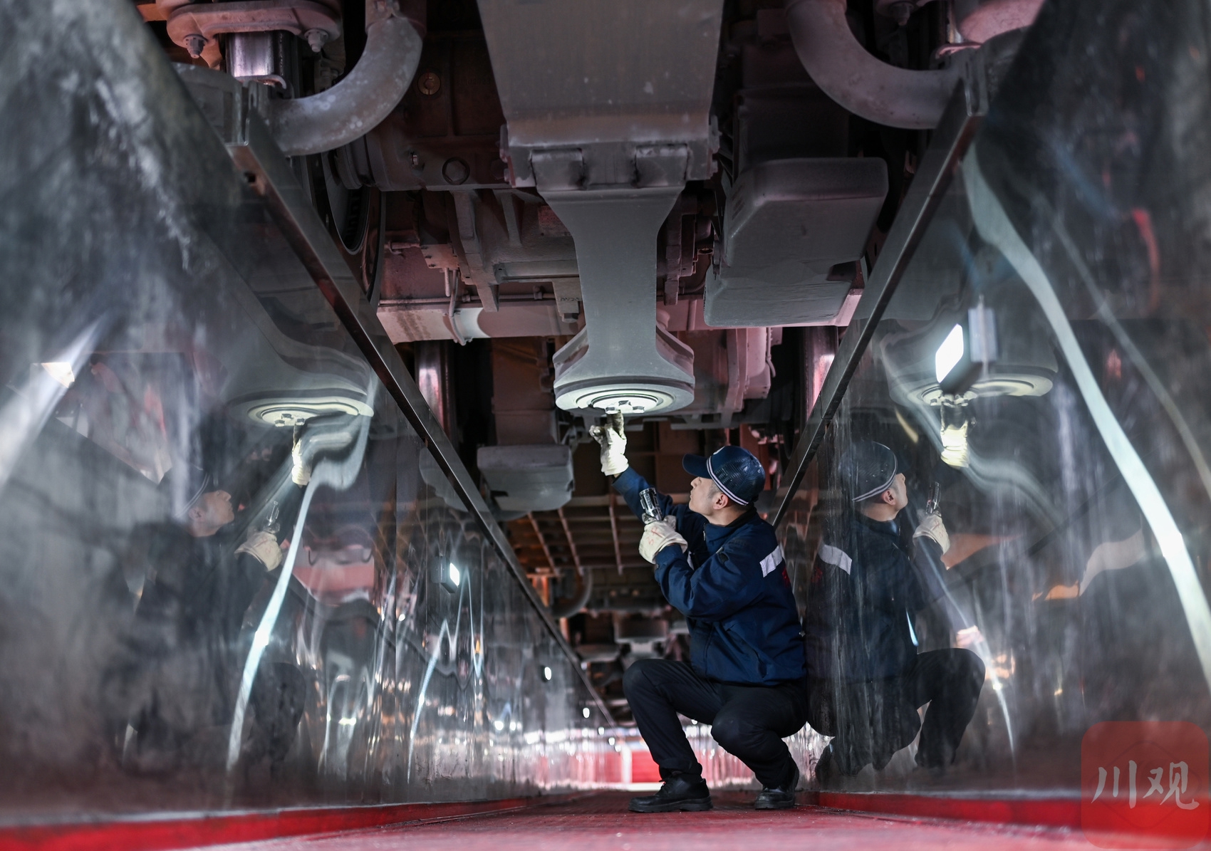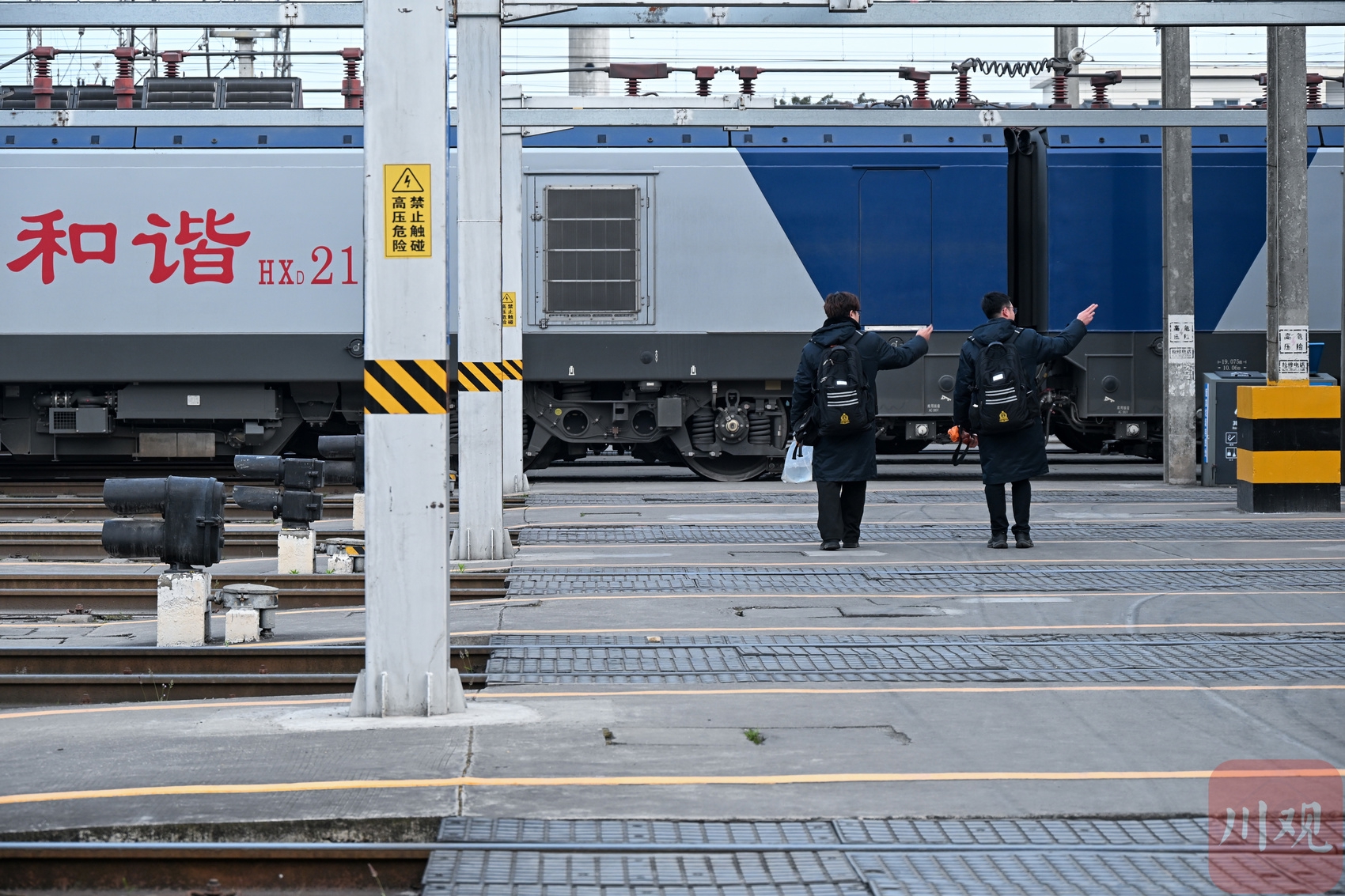 成都机务段职工紧盯机车运行状态,细致做好机车检修、调度指挥、列车值乘等各项工作,以严谨操作全力保障春运期间货运列车安全准点运行。与此同时,成都国际铁路港内作业井然有序、不停歇,现场工作人员有序开展班列组织、货物查验、装卸转运等作业,确保中欧班列稳定高效开行。