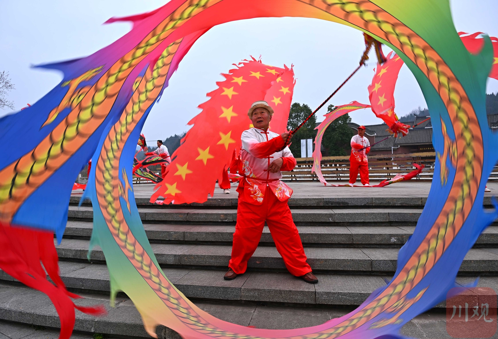 2026年2月17日大年初一,在眉山市仁寿县文宫镇文化公园,爱好者正在舞“彩带龙”庆新春。C视觉签约摄影师 潘建勇 摄