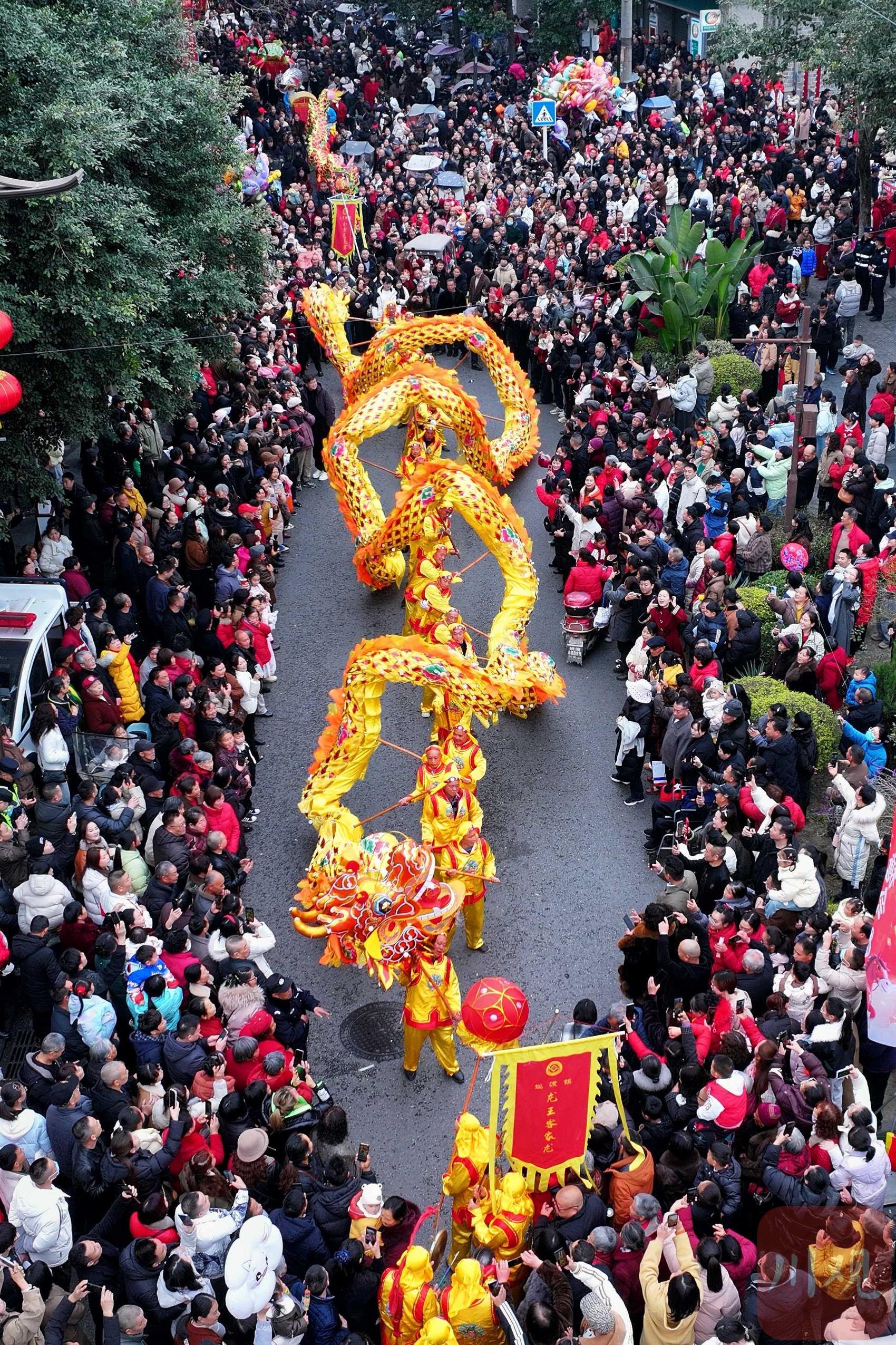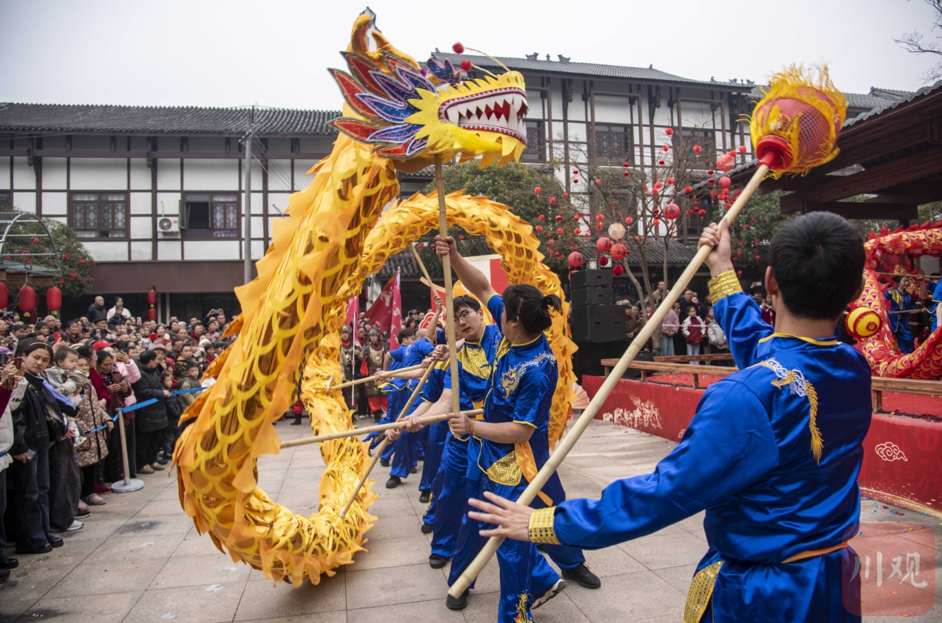 2026年2月17日大年初一,成都市蒲江县朝阳湖镇,市民观看舞狮、舞龙等精彩表演,享受年味十足的非遗民俗文化盛宴。C视觉签约摄影师 祝纯健 摄