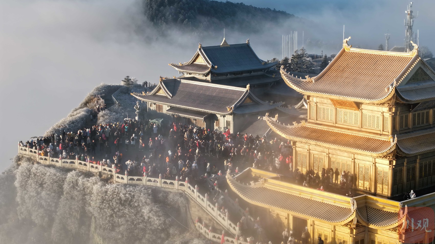 2026年2月17日大年初一,峨眉山金顶日出灿烂,游客纷纷打卡。C视觉签约摄影师 锦书 摄