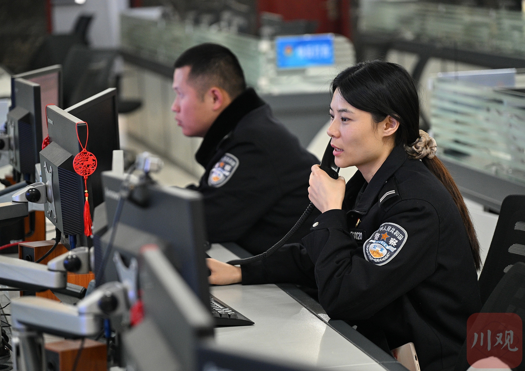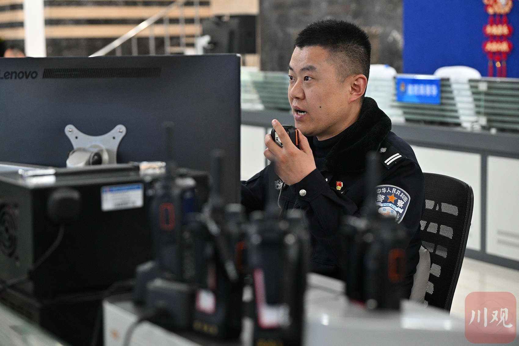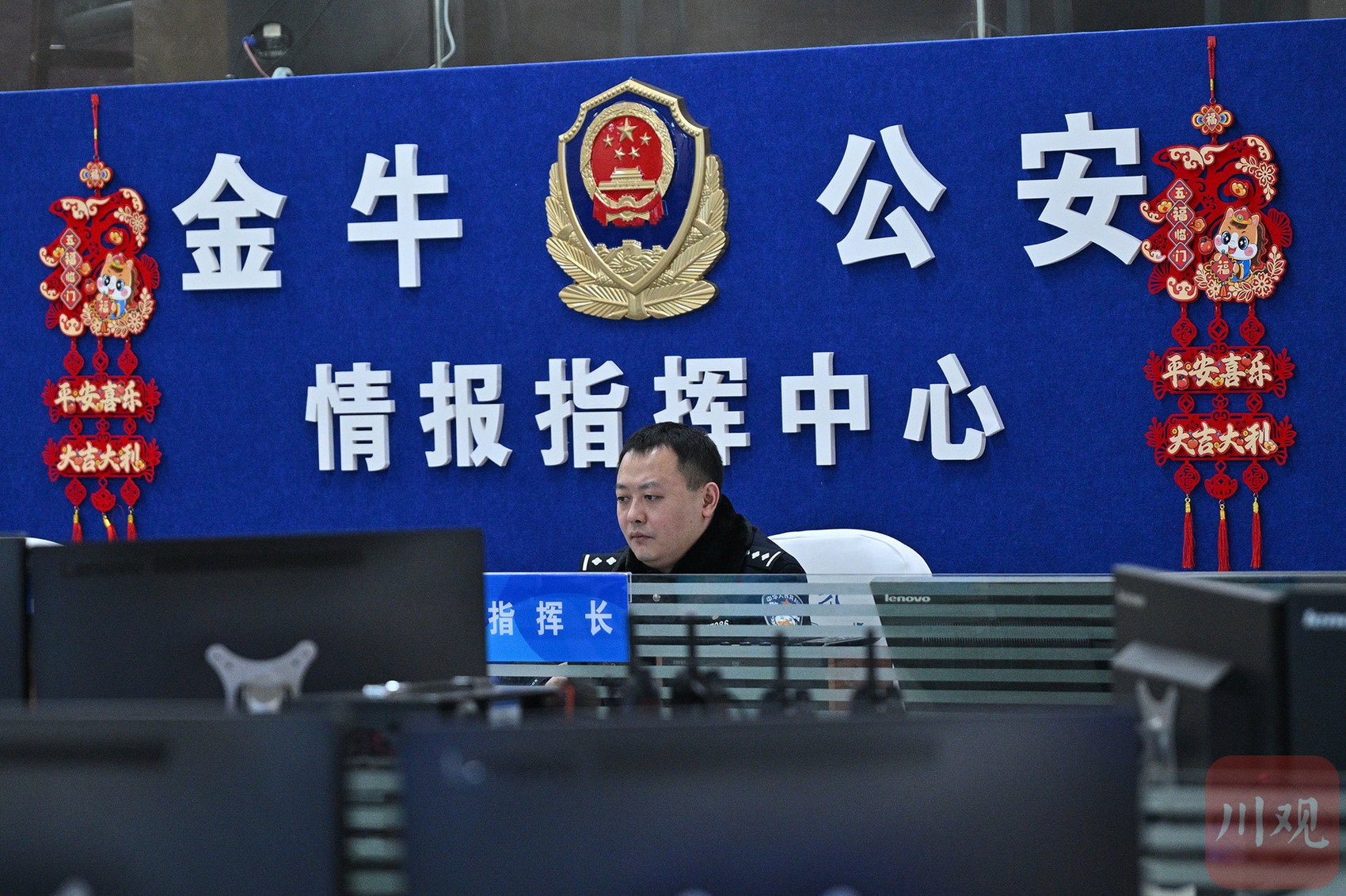 陈诚在成都市公安局金牛区分局情报指挥中心值守。