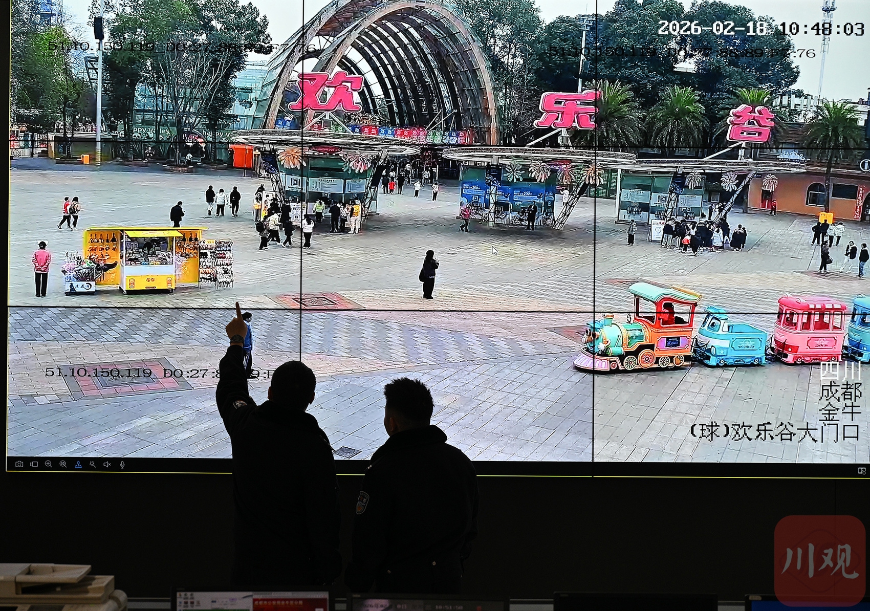 民辅警们在成都市公安局金牛区分局情报指挥中心查看景区人流量。