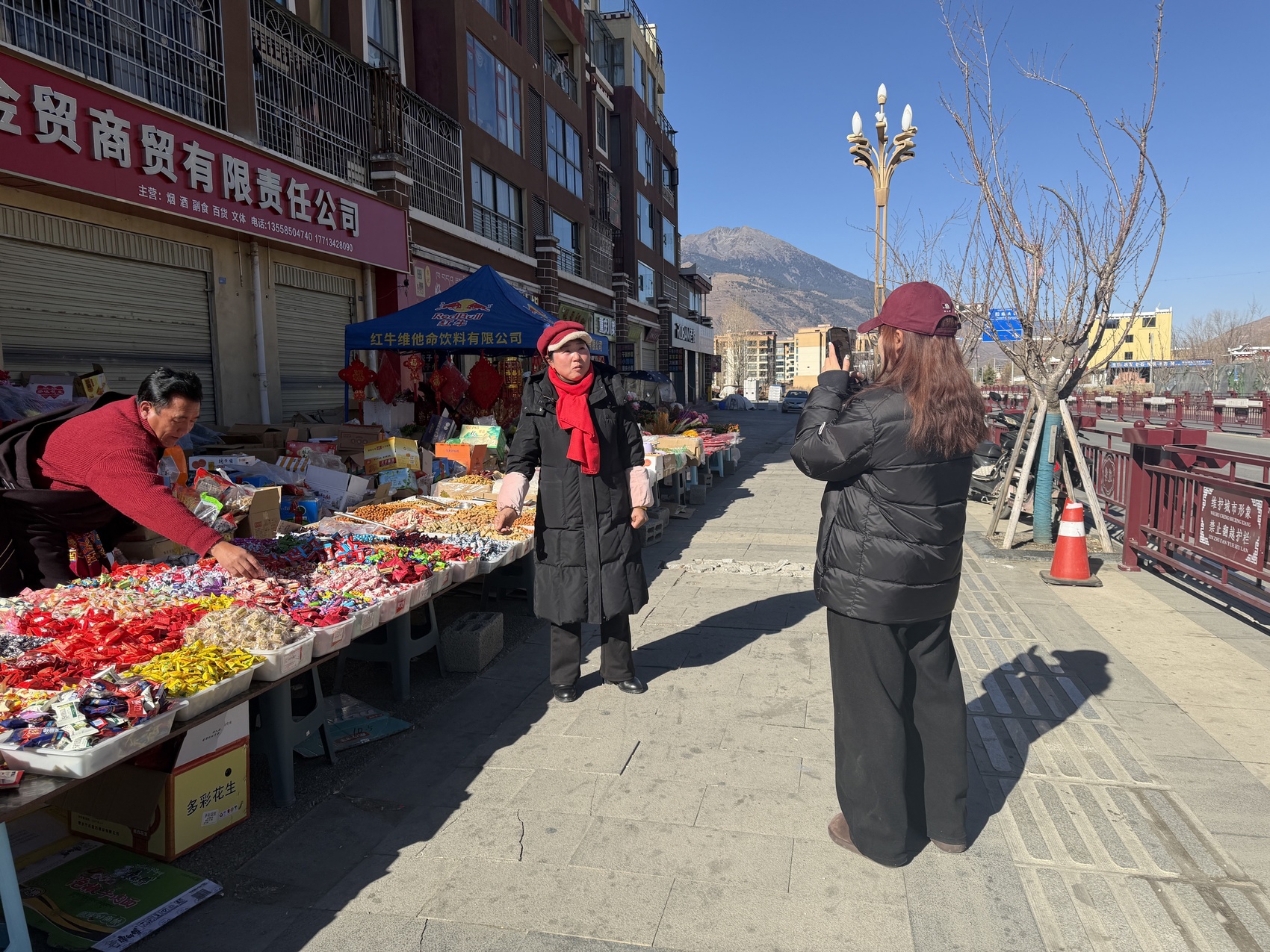 这些年,货架上的东西已经大变样。早些年,藏装、铜锅、手工藏毯是主角;如今,川味腊肠和牦牛肉干并排挂着,罐装可乐挨着砖茶摆在一起。过年期间,她愣是不涨价,全按批发价走。“都是老熟人,过年嘛,图个心意。”
