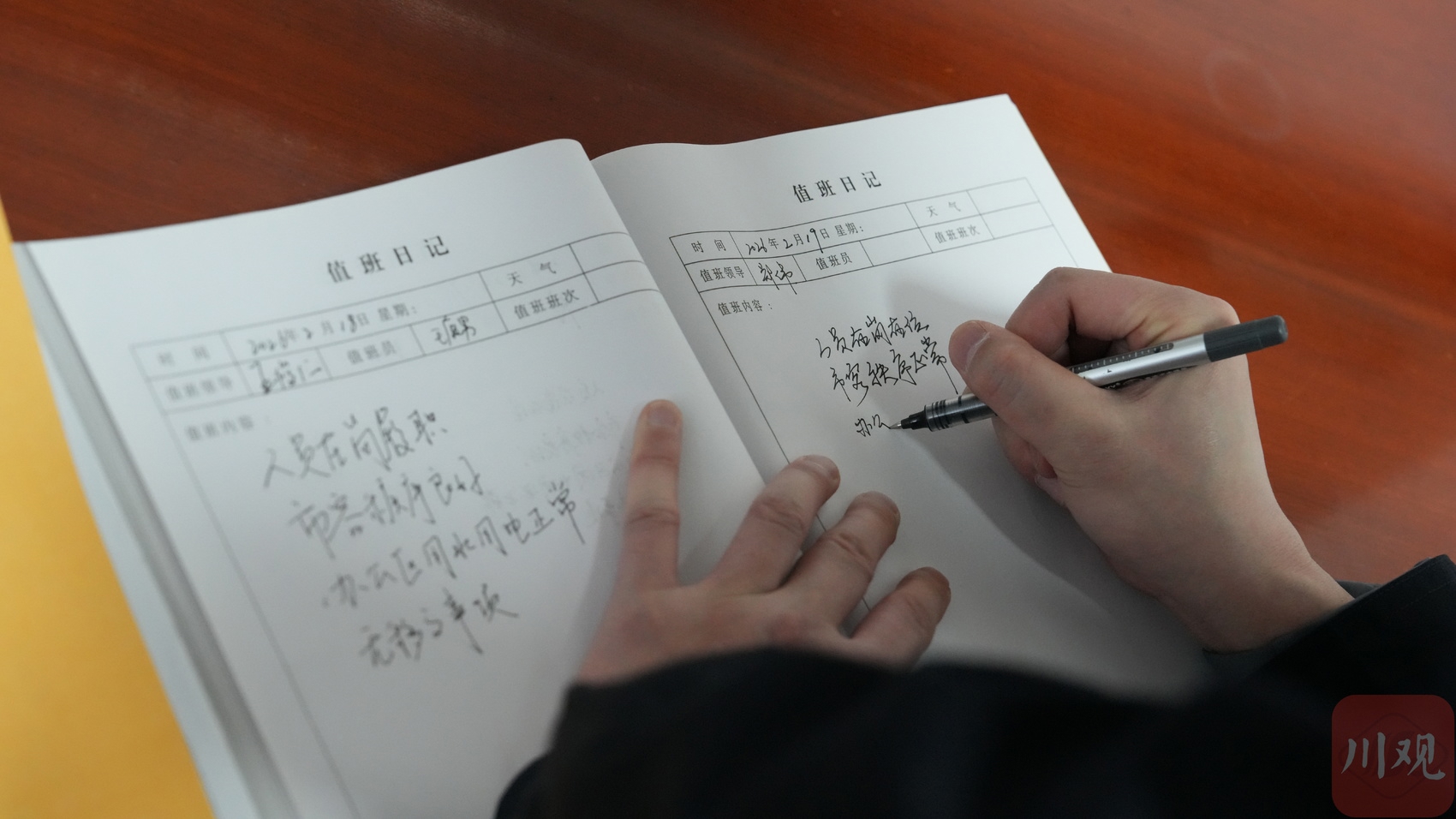 成都市城管执法总队火车站支队二大队副大队长正在填写值班日记