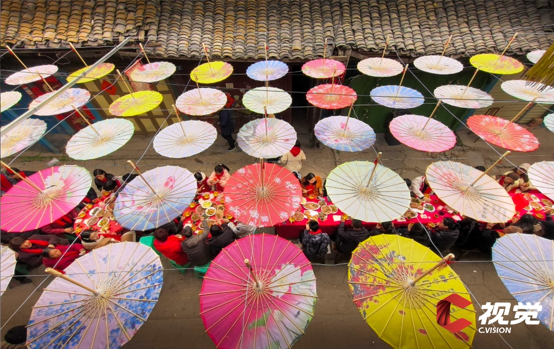 2026年2月17日,简阳市石桥古镇。颜料盘打翻在百年老巷,油纸伞下,藏着一场盛大的团圆与热闹。C视觉签约摄影师 邹文泗 摄