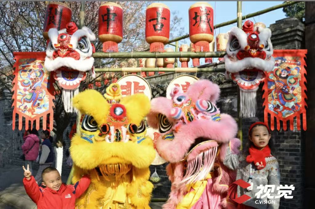 2月19日,南充市阆中古城舞龙舞狮、巴象鼓等表演持续火爆。游客们品茶听曲、观赏演出,欢度传统佳节。C视觉签约摄影师 姚文顺 摄