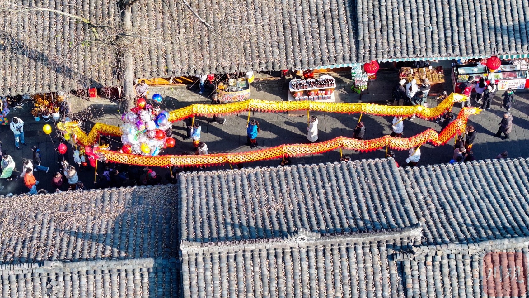 人潮涌动处,烟火气升腾。火红的古城景观与熙攘的人群相得益彰,烘托出新春红红火火、喜庆祥和的浓浓年味。