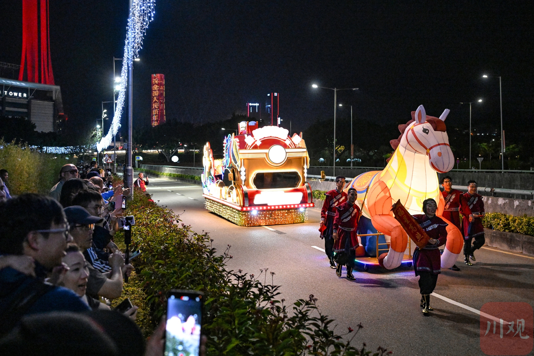 2026年2月19日晚,“骏马腾飞 欢乐春节——2026农历新年花车汇演”首场巡游在澳门精彩上演。17辆主题花车、近1300名中外表演者轮番献艺,一路欢歌笑语,让街巷变身喜庆热闹的新春海洋。