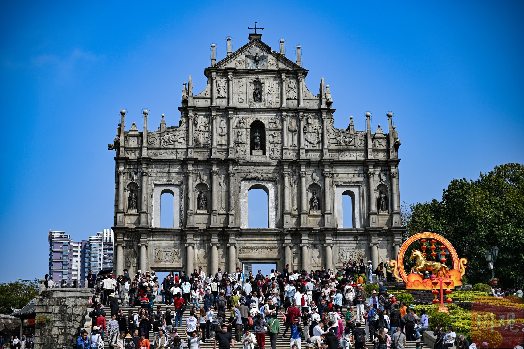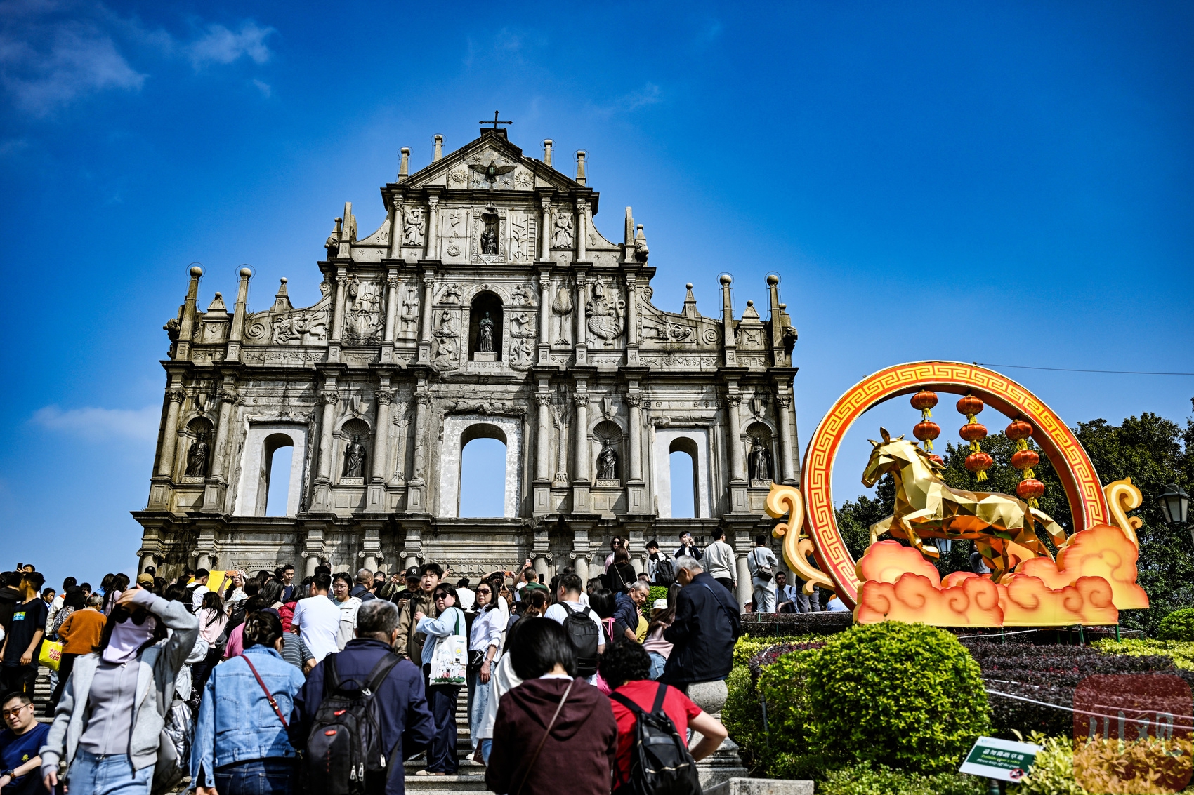 2026年2月19日,游客打卡澳门大三巴景点。