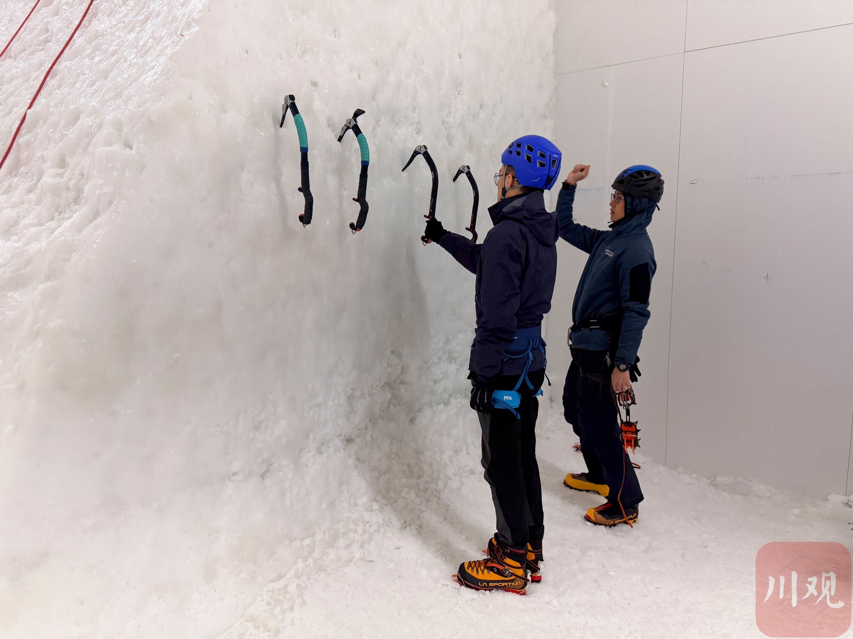 “2月初,双桥沟户外攀冰就结束了,还好有室内馆能继续练习。”每到冰期,攀冰爱好者驹驹就会追着川西的冰瀑跑,“相较于天然冰壁,室内冰壁更平整,且有多种坡度可选,能快速上手,练习效率也大幅提高。”