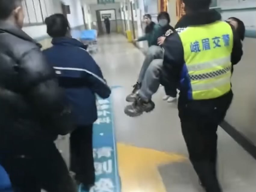 峨眉山市交管部门为受伤男孩开辟“生命通道”。峨眉山市公安局交管大队供图