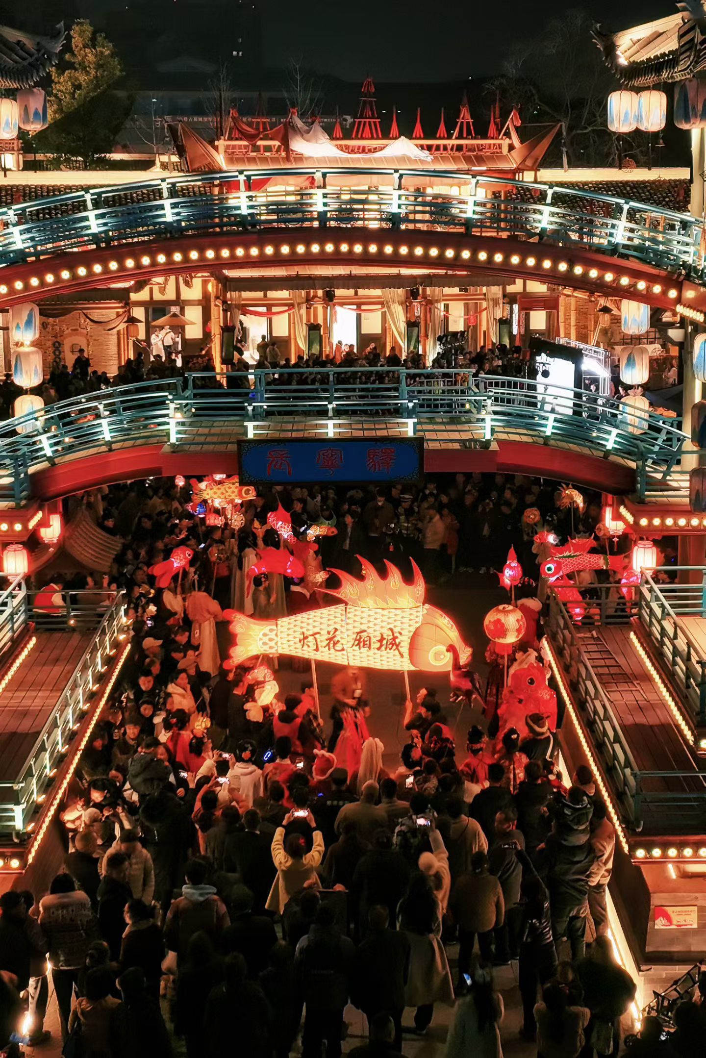 不只是游花灯和放河灯。今年春节期间,城厢古城还常态化举行非遗皮影戏专场展演、汉服巡游、“钢花十二韵”音乐会、音乐话剧《戏梦长生》沉浸式演绎、巴蜀笑星文艺演出等活动。