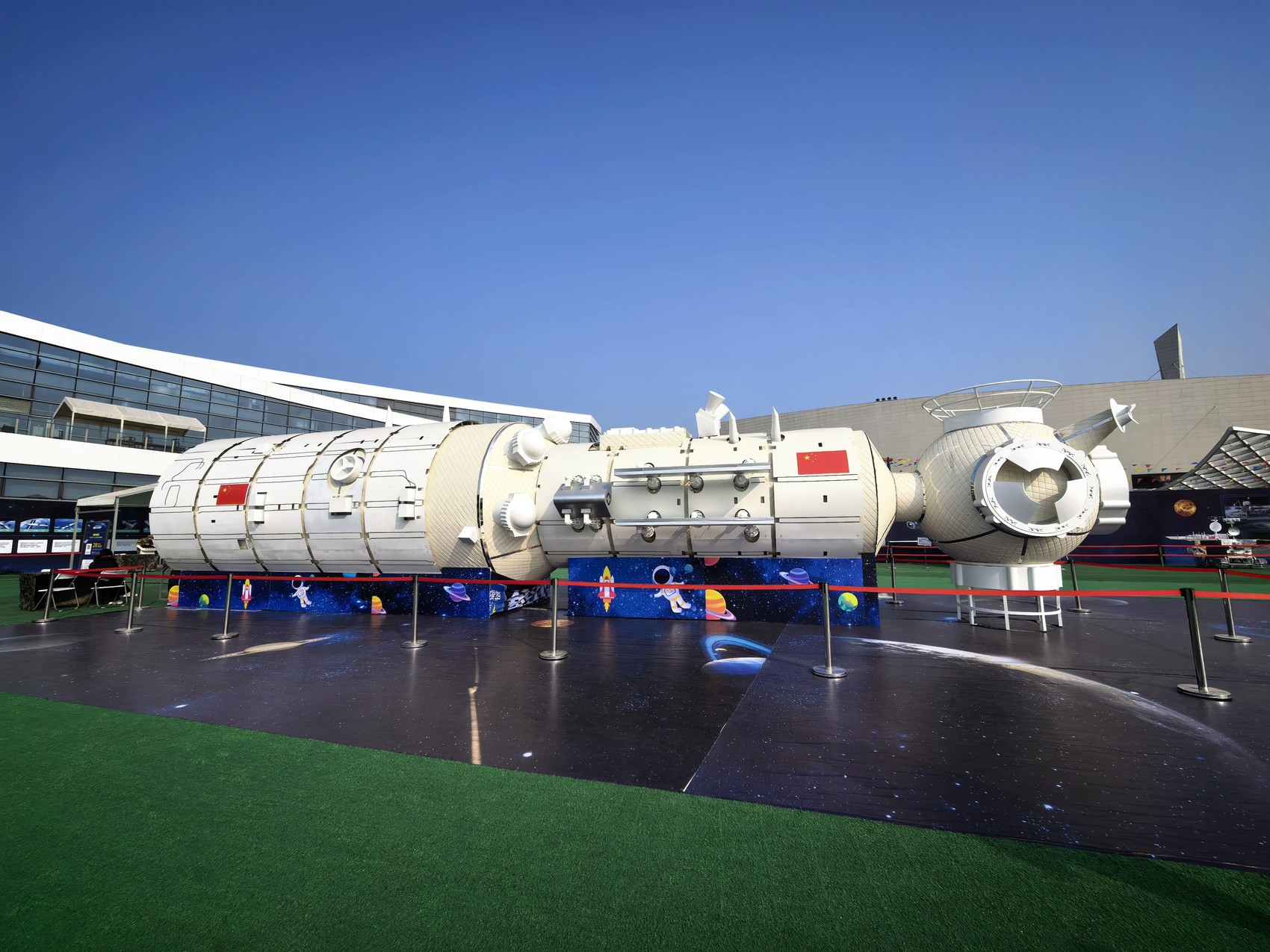 VR体验区是当之无愧的“人气王”。潜艇模拟舱里,戴上头盔便“潜入”深海,鱼群从环形视窗掠过,幽蓝微光忽明忽暗。天和核心舱VR实景模拟场地前更是排起长队,观众争相“飞向太空”,走进航天员的世界。